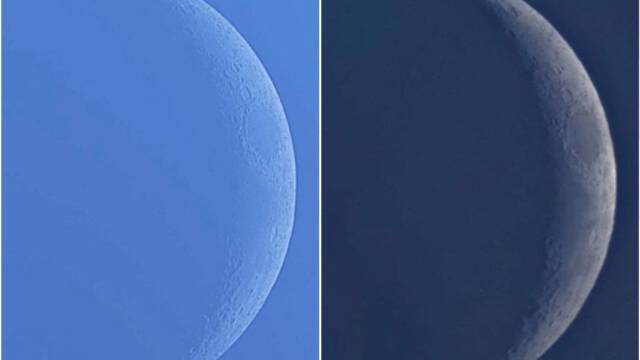 まだ太陽が出ている明るい空の中の月をSeestar S50、夜になって土星をCOOLPIX P100...
