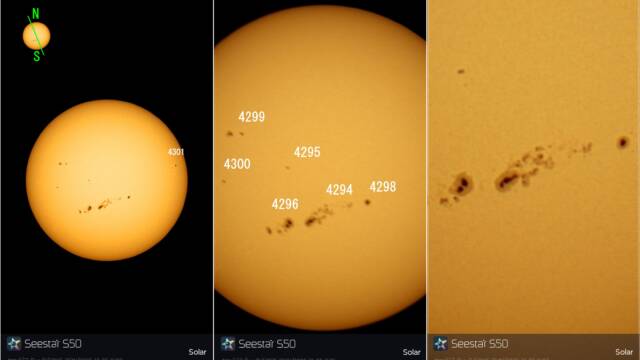 4日前に撮影した黒点が太陽の自転で中央に廻ってきました。Seestar S50により×1、×2、×4...