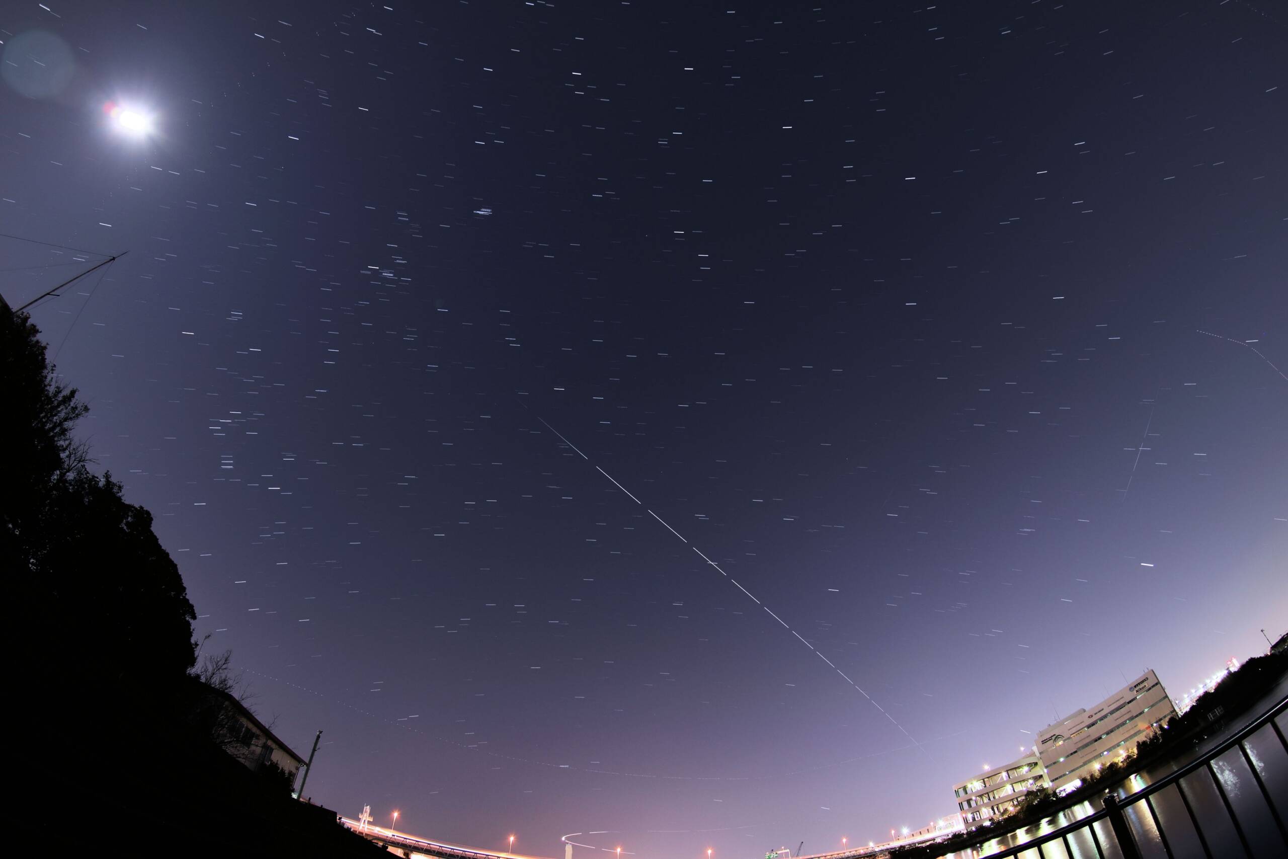 ISS 2022/01/16 18:27:04~18:31:40 EOS-M6 7artisans 7.5mm F2.8 Fish-eye ISO-200 f/5.6 10秒(2秒間待機繰り返し)24枚 SiriusComp64で比較明処理 コントラスト、明度、WB調整