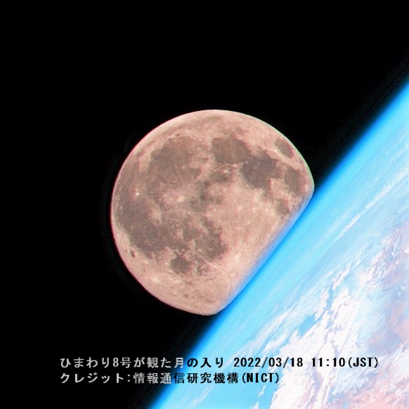 画像1 ひまわり8号による月が写っている地球画像 2022/03/18 11:10
