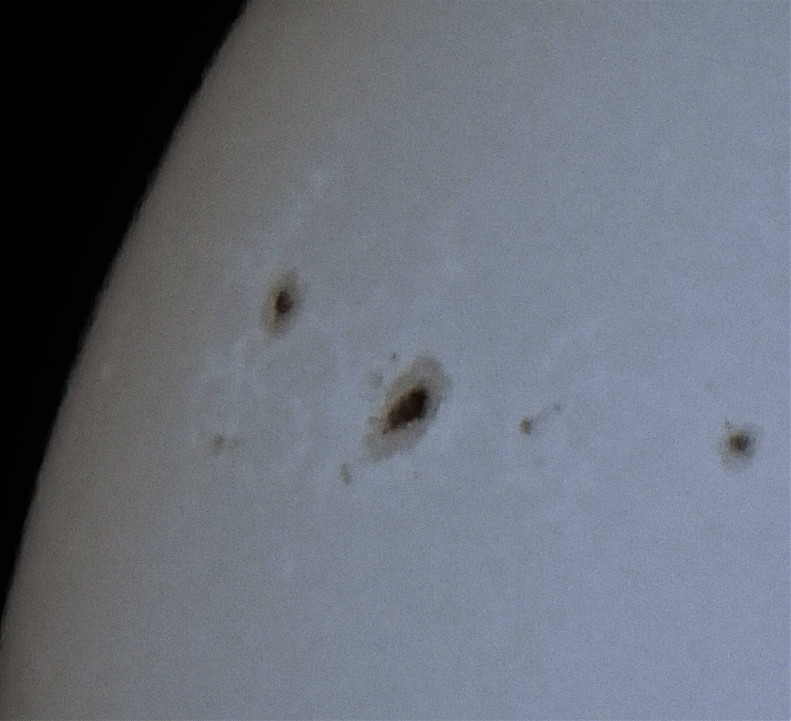 黒点群2974、2975、2976が採番されていましたので、このうち、2975と2976の領域を拡大して撮りました。その画像を画像2に示します。同様に4枚のスタック画像です。焦点距離を最大にして。かなり粗いのですがそのまま載せておきます。