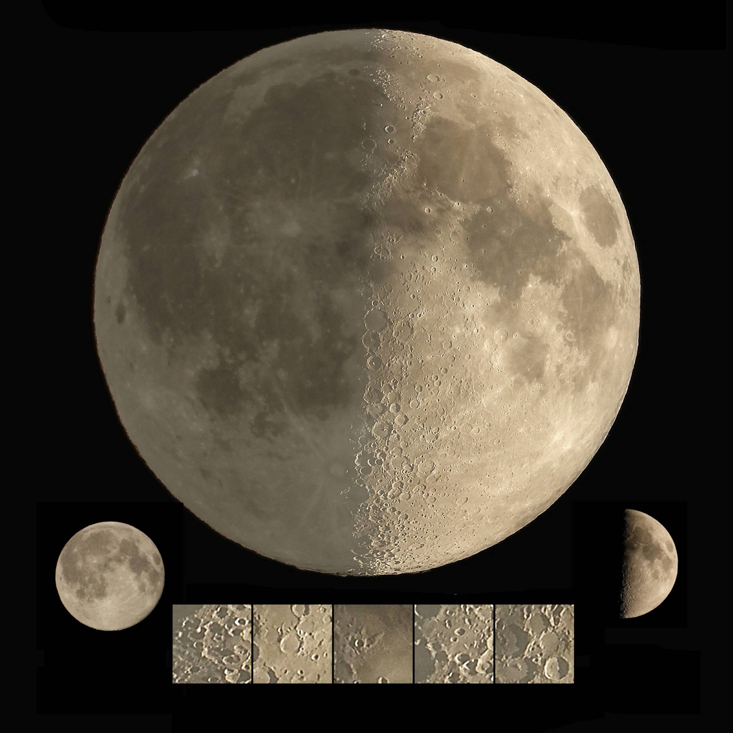 画像1 満月と上弦の合成 Digital Photo Professional 4で加算平均処理 左側も少し明るめに