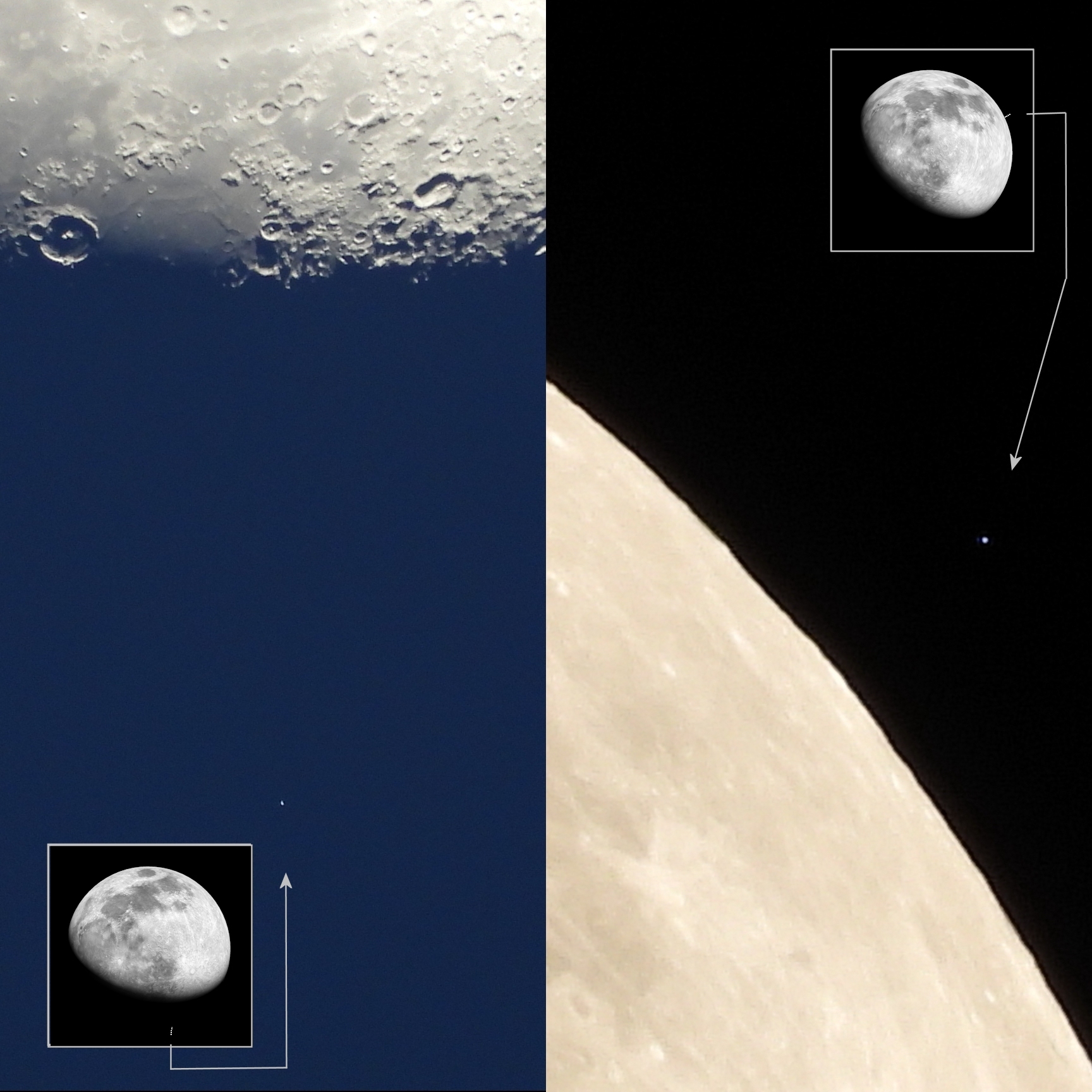 画像1 しし座η星の掩蔽 掩蔽前(左) 18:18撮影:ISO-200 f/8 4,800mm相当 1/30s 掩蔽後(右) 19:50撮影:ISO-100 f/8 12,000mm相当 1/50s