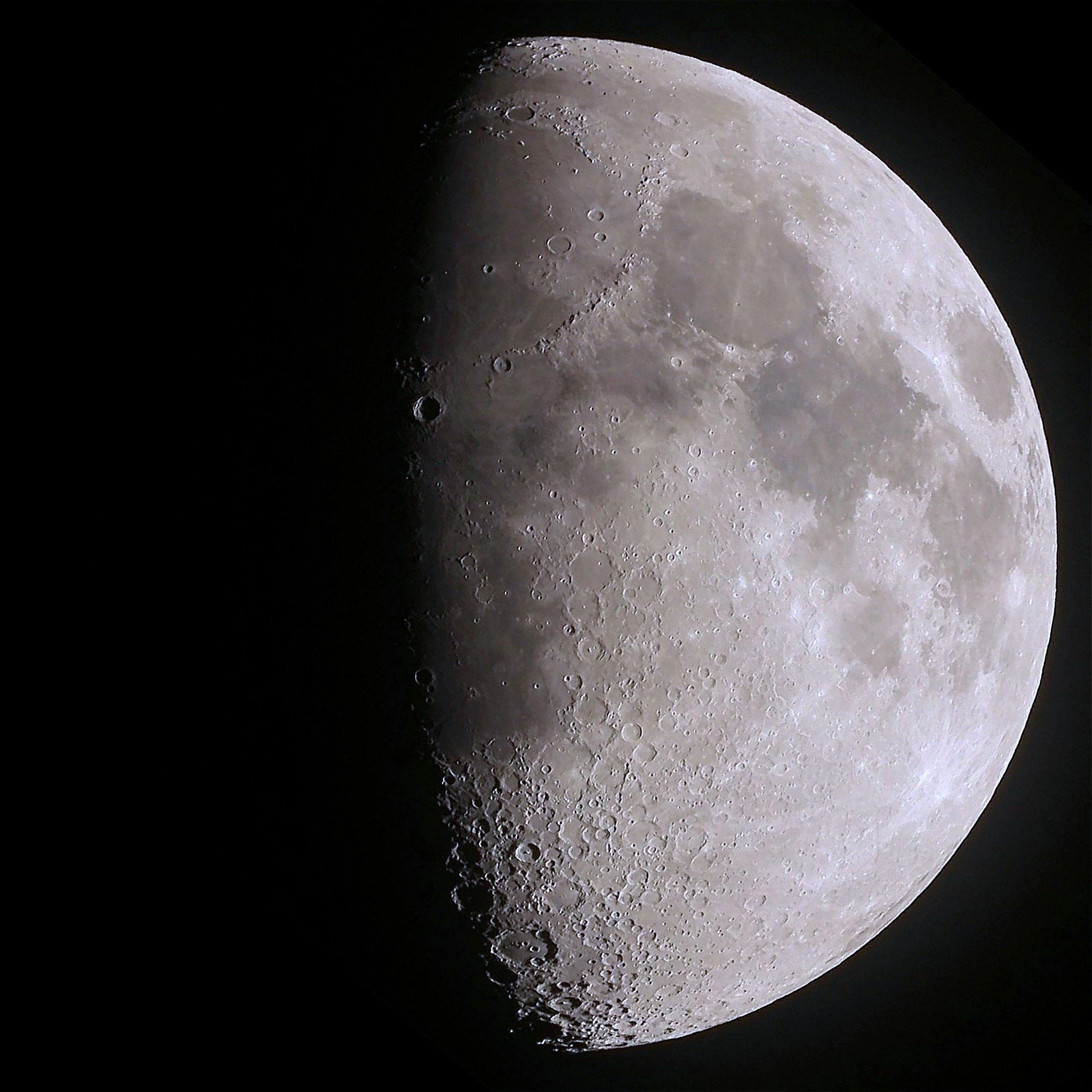 画像1で右端やや上の「危難の海」がかなり縦長の楕円模様になっているのが気になりました。もっと円形に近いと思っていましたが球体をイメージすれば視野角度的に月の縁に位置するので接線、斜めからそのように見えるのだろうと想像はできます。
