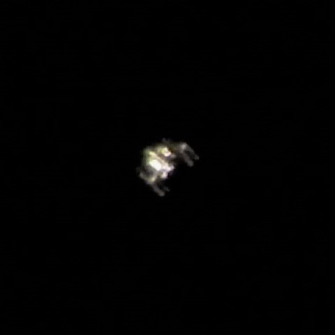 画像2には天頂付近のISS拡大像を示します。光跡画像からも推察できるのですが、天頂付近でわずかに見え、雲間ではありますが4K動画で撮影。元々暗めを予想してシャッター速度もいつもより遅く1/640秒としました。ほとんどISSらしい姿を見せた画像は無かったのですがその中でも良い方のひとコマを選びました。右下に向かって進んでいます。先頭のクルー-3ドラゴンは切り離され、クルー-4ドラゴンが宇宙側にドッキング状態。
