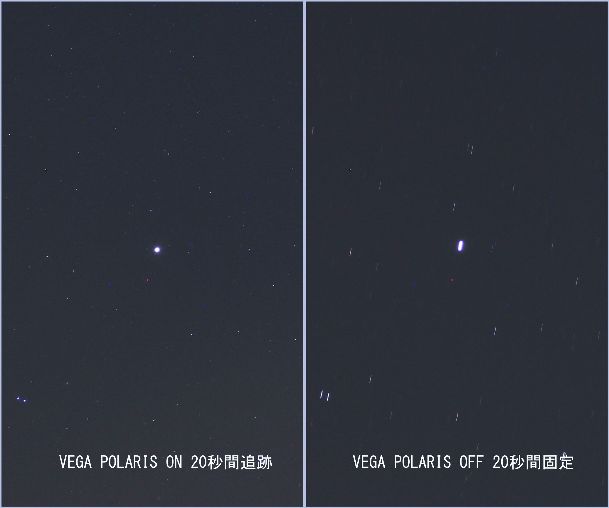 画像5 ベガの画像 POLARIS追尾と固定撮影(露光20秒間)の拡大画像の比較
