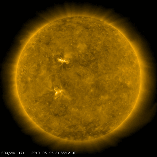 (1) 2019/03/06 22:09:54~2019/03/07 01:54:52 UT (2019/03/07 07:09:54~2019/03/07 10:54:52) → 月が太陽面通過中に逆方向に月が戻り始めびっくり。観測点のSDOと月の軌道の組み合わせから追跡したためにそう見えた?。(日食撮影時のみセンタリングが少しずれたりしているように見えるのですがその関係?良くわかりません) → 追記:2022/07/06。逆走と画像のぶれについて記述がありました。https://sdo.gsfc.nasa.gov/gallery/main/item/829 この記事から画像のぶれ(センタリング)は月の影に入ったため温度が下がり望遠鏡形状に影響したとのことでそのまま受け入れられましたが、月の逆走については軌道の関係による原因と想像できますがどのような月とSDOの位置関係になっているかイメージが浮かびません(私自身の事です)。
