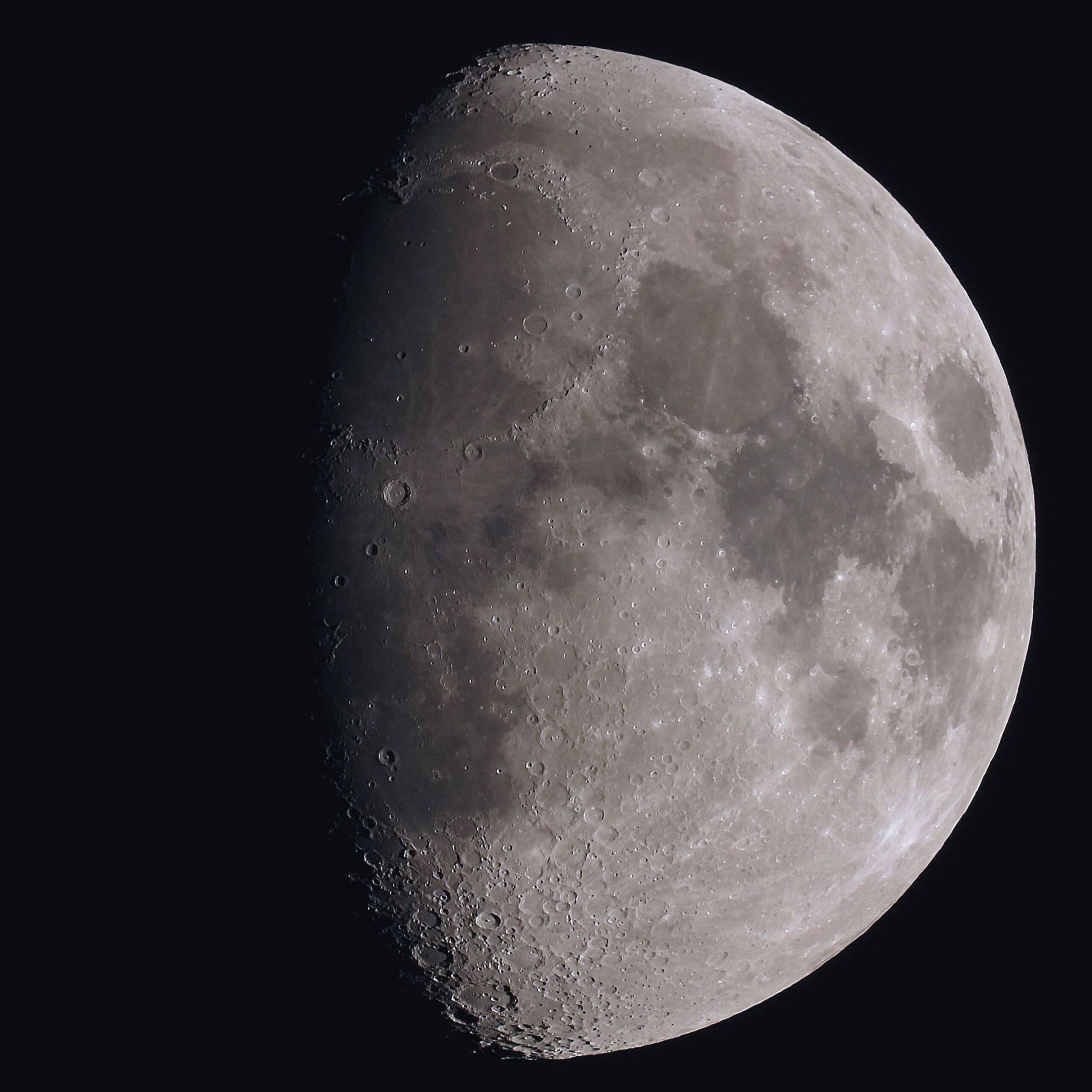 画像1 月齢9.7 2022/08/07 19:16 COOLPIX P1000 ISO-100 2,000mm相当 f/6.3 1/160秒 10枚スタック処理等