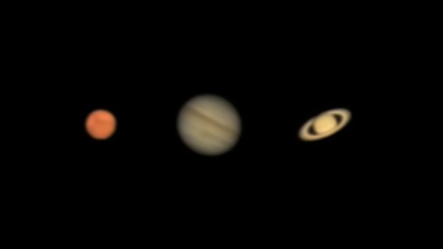 ここでは、火星、木星、土星の過去の一例を上記検索ページから選択し、元データ(4K動画)に戻って三つの惑星を重ねて一つの動画ファイルにしました。動画1に示します。