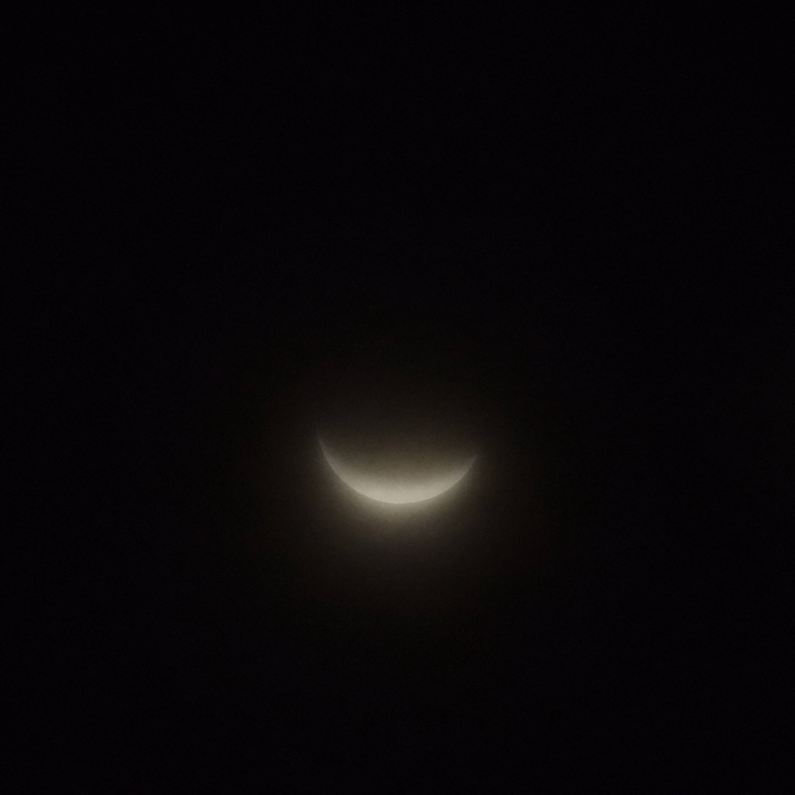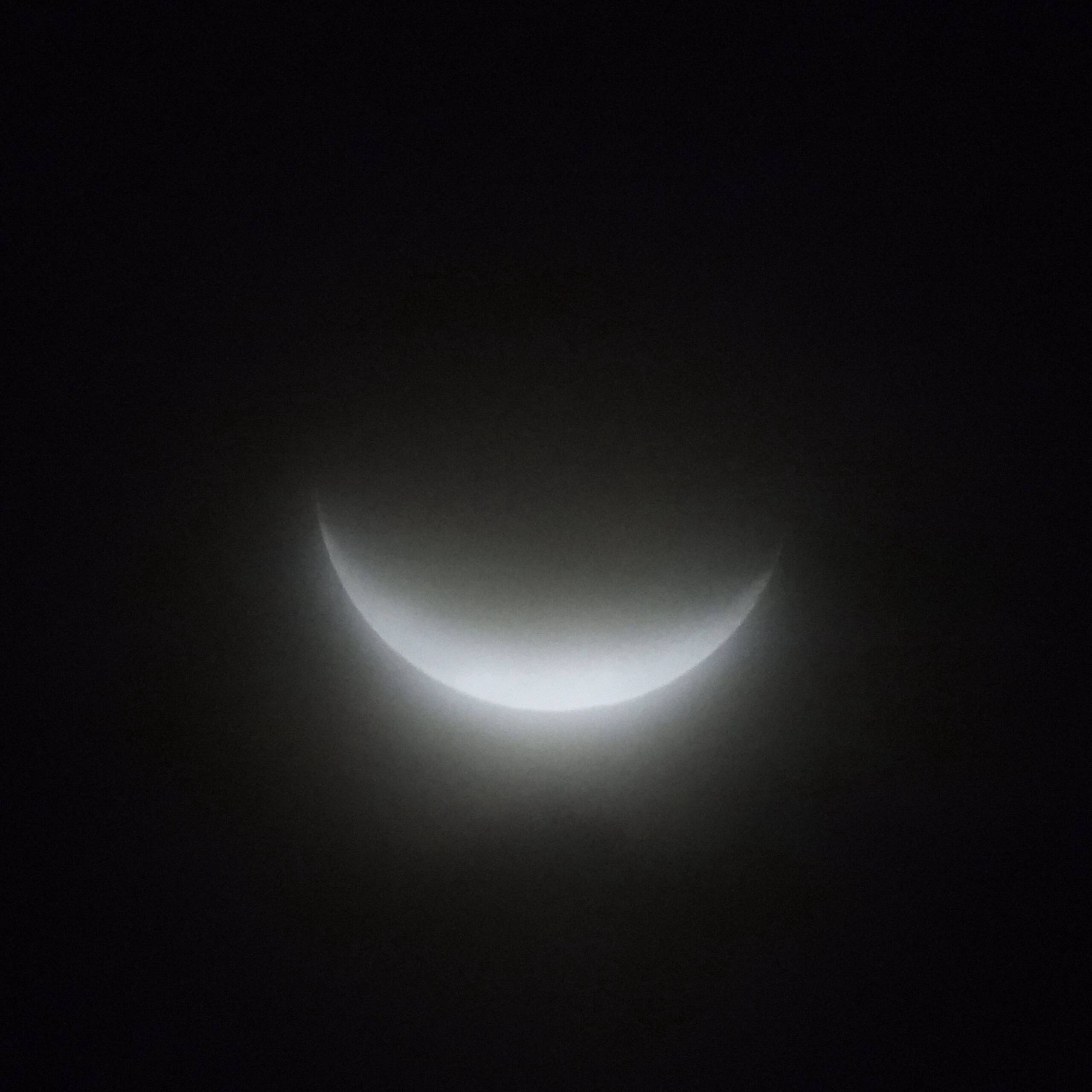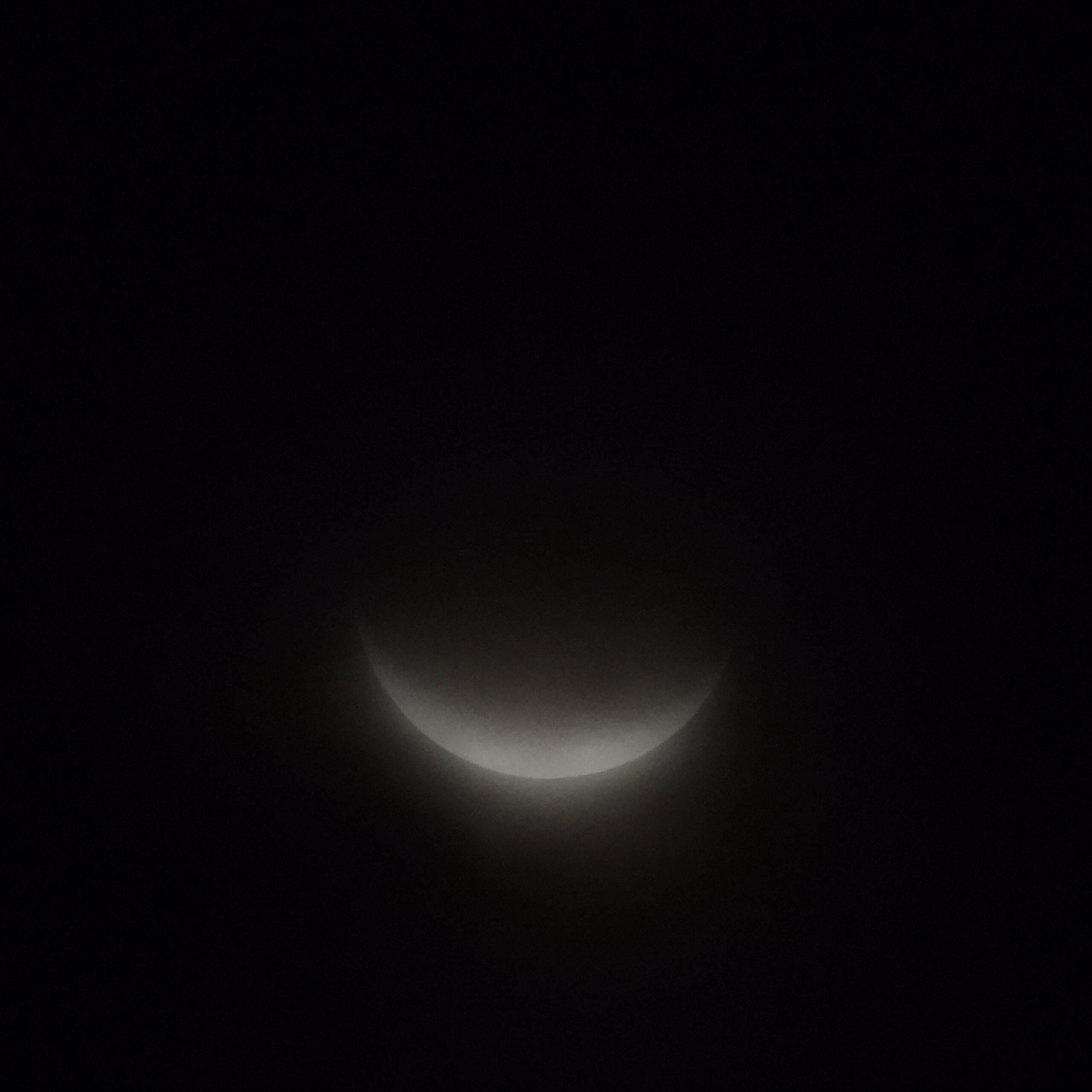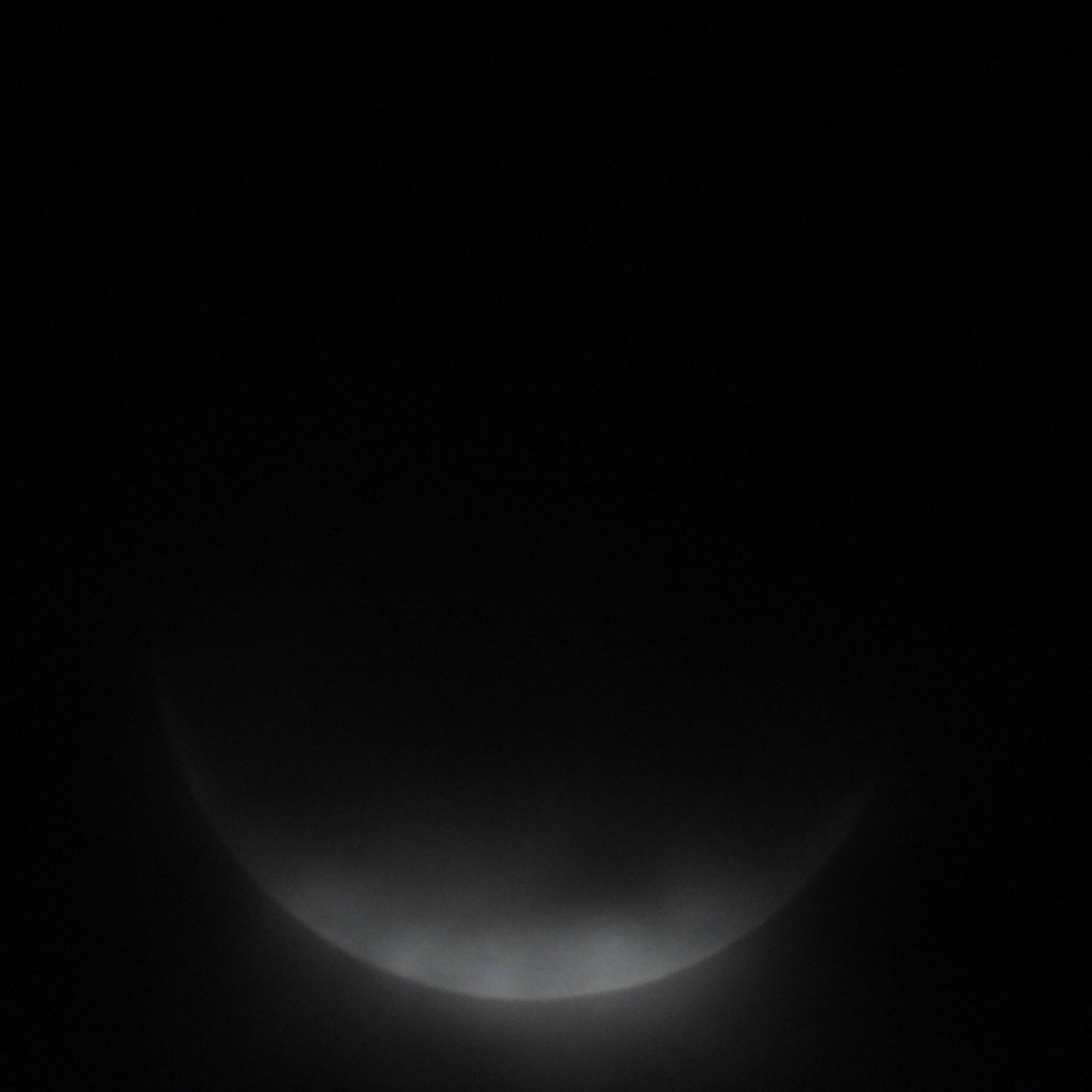 早起きにもかかわらず今朝の空は全体が白い。あきらめムードの中、しばらく目をパチパチさせていましたら、”もや”の中に少し明るく水平にボーっとした輪郭が見えました。眺めている間、”もや”は途切れることはありませんでしたが04:30~05:00の間に撮影を実施。その後月は見えなくなりましたのであきらめて機材をそのままにして二度寝。