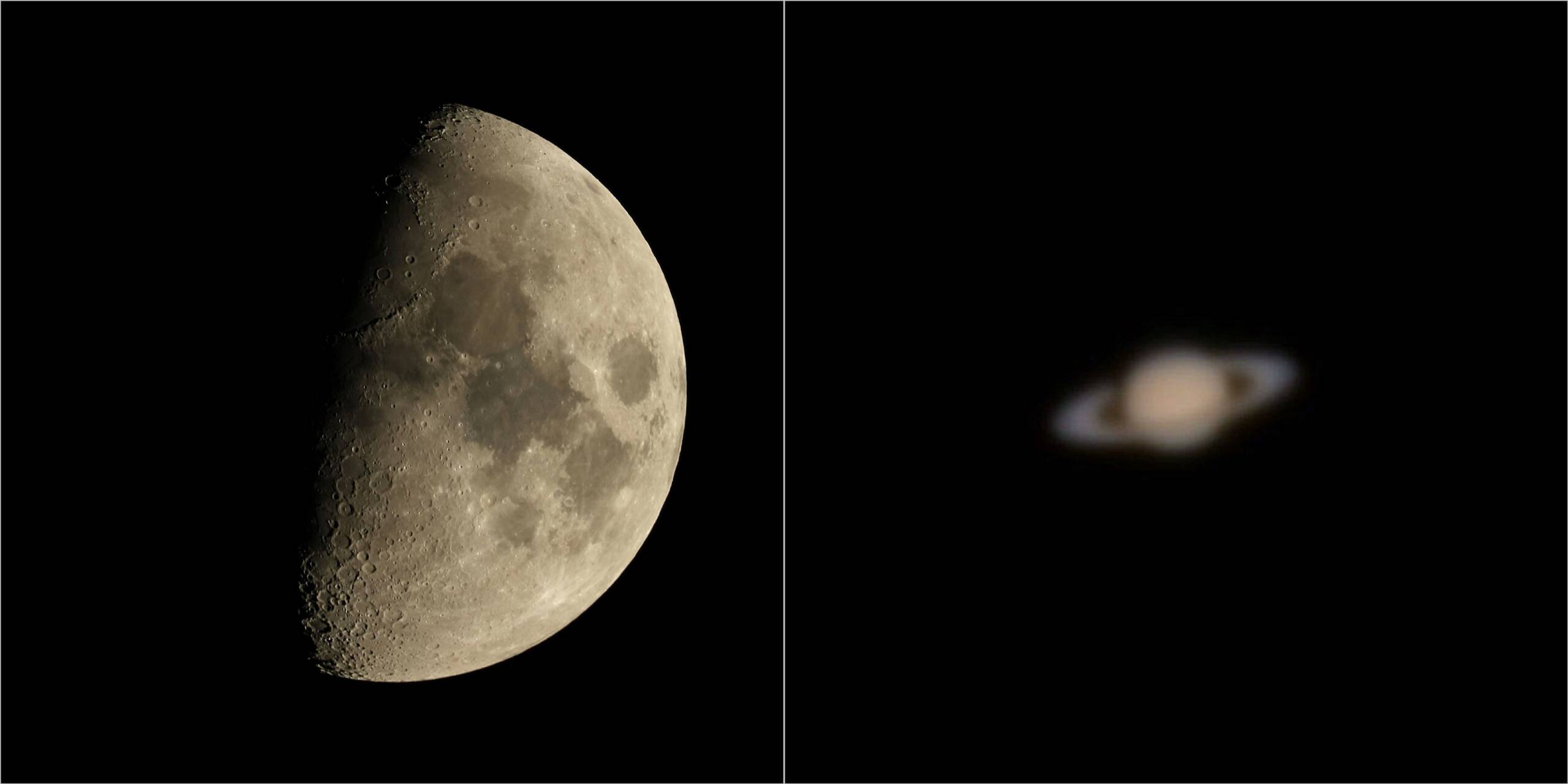 いつもの2,000mm相当の月、3,000mm×3.6=10,800mm相当の土星を画像2に示します。快晴なのに揺らぎは大きい、残念。