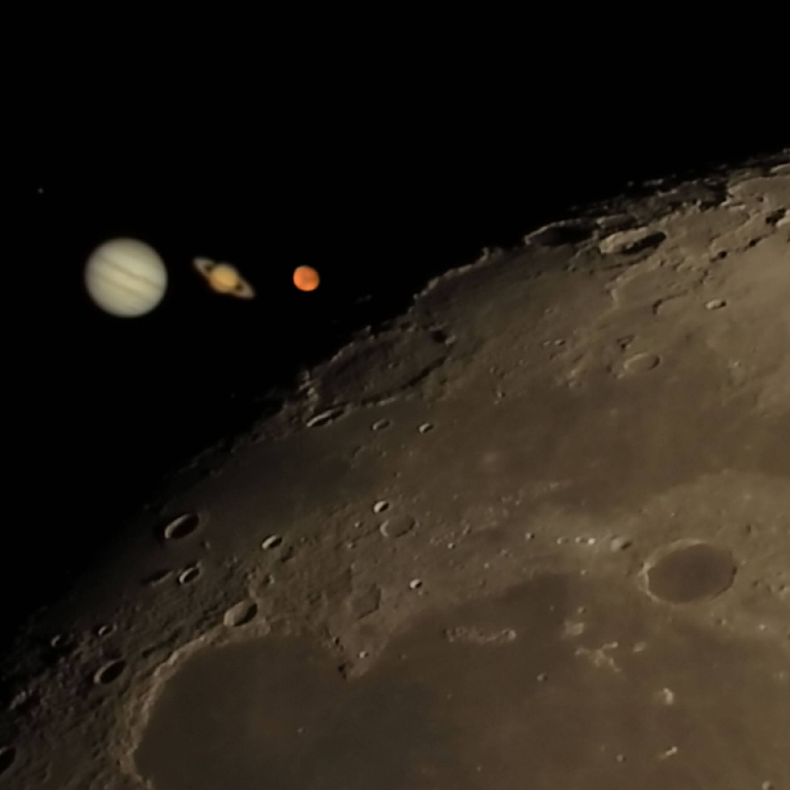 画像3 月齢11.0、木星、土星、火星の組合わせ合成画像(四天体同倍率)