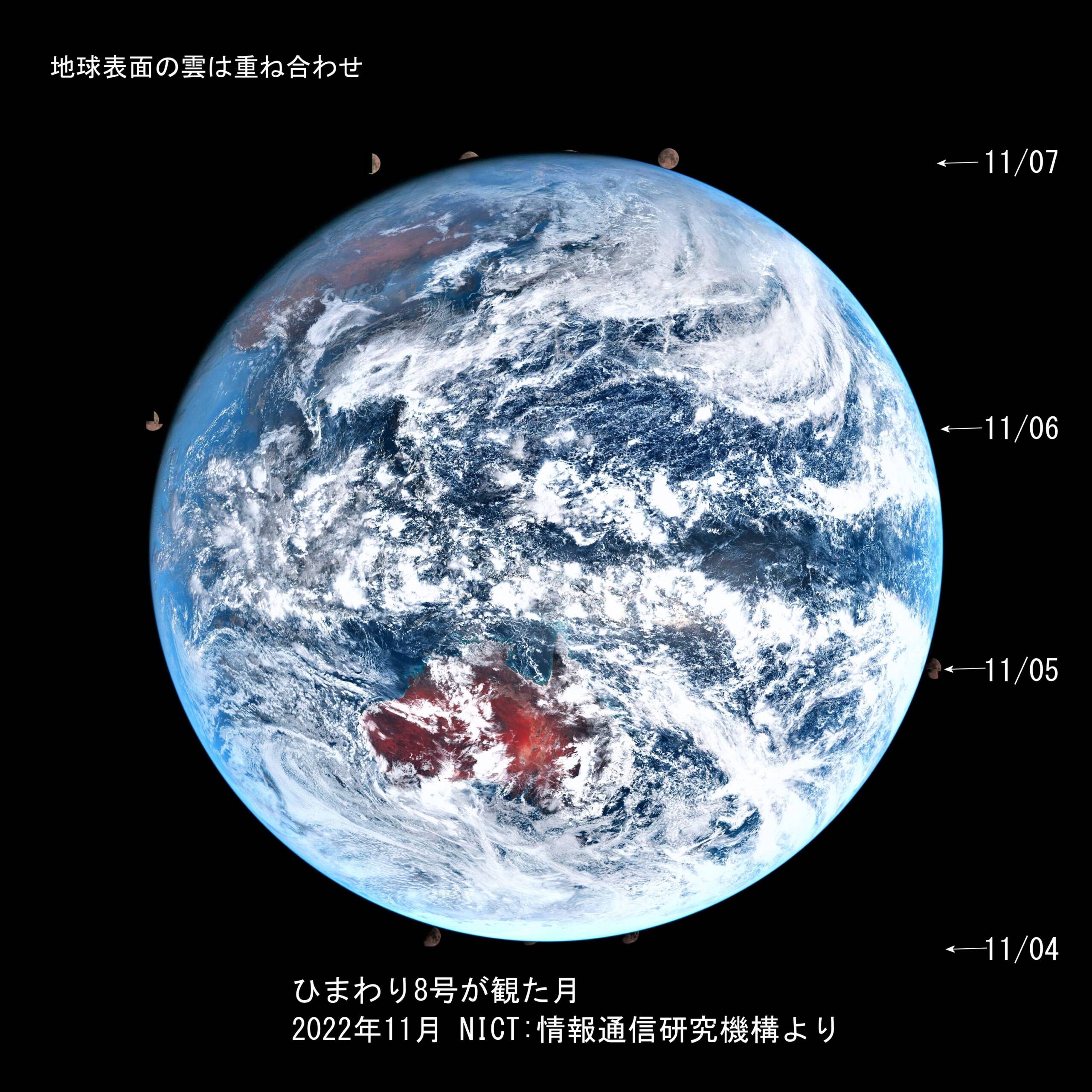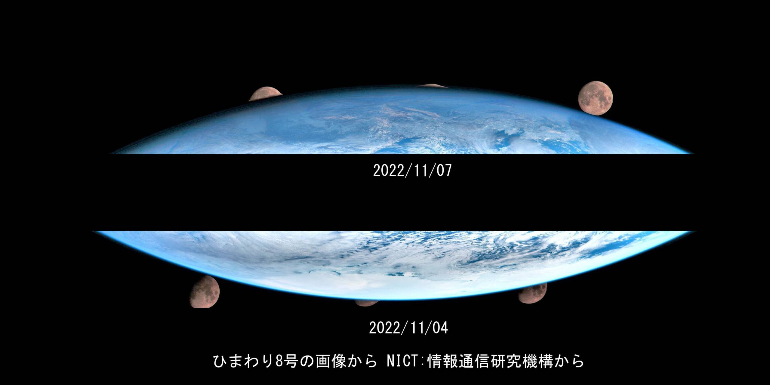 画像1 ひまわり8号が見せてくれた最後の満月期近くの画像 2022/11/04~11/07 NICT:情報通信研究機構からDL 9枚の比較明処理