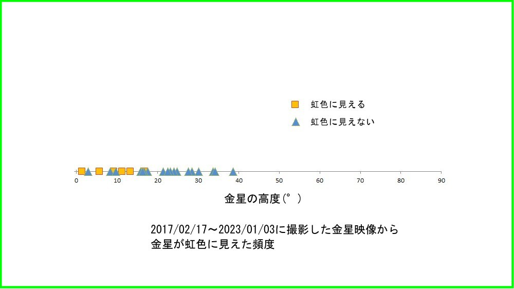 画像1 金星が虹色に見える頻度(個人的な印象で判定していますので注意)