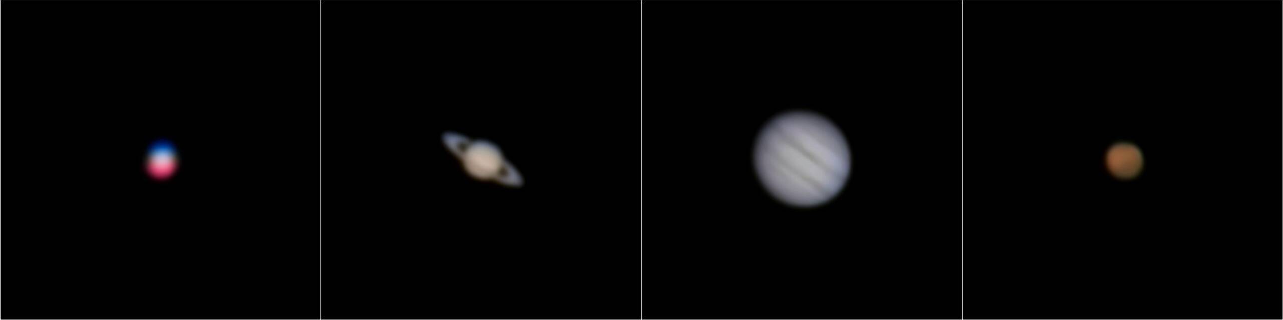 画像1 左から金星、土星、木星、火星 30秒間の4K動画からAutoStakkert!3で処理、ホワイトバランス等画像調整