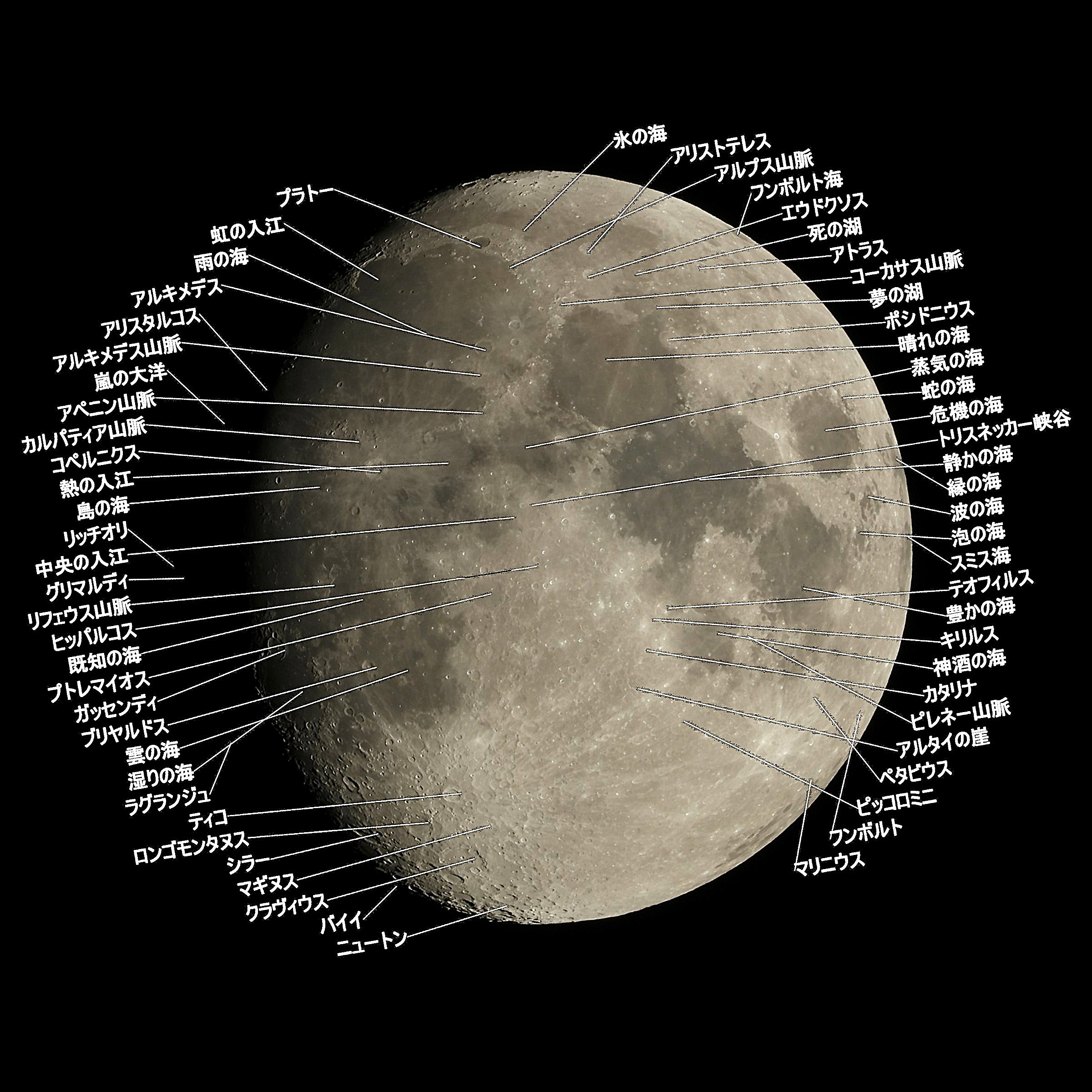 画像2 月面の地名(南側の縁はほんの少しだけずれているかもしれません、概略の位置は把握できます)