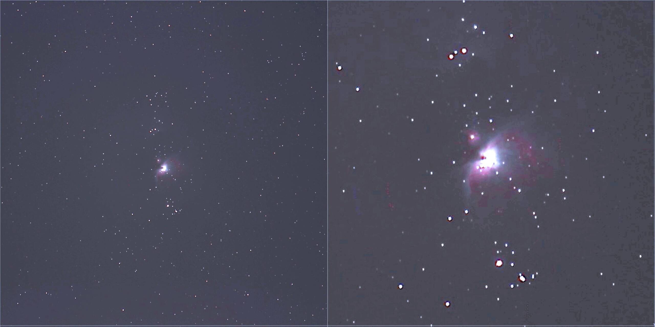 画像1 オリオン大星雲M42 2023/01/29 20:00 EOS Kiss X7i +4L 70-200mm ISO-400 f/4 200mm 20秒 10枚自動撮影 → AS!3でスタック