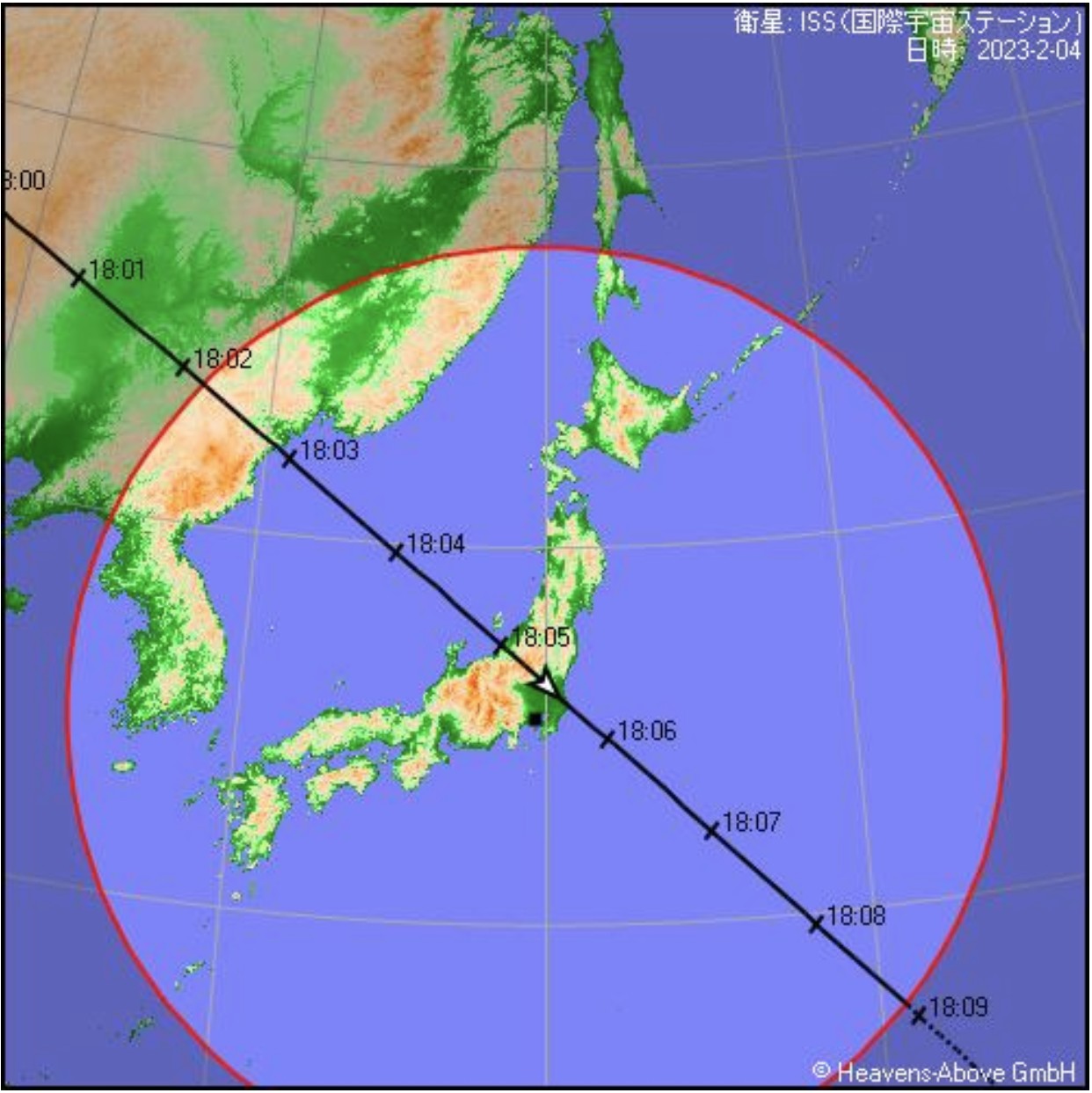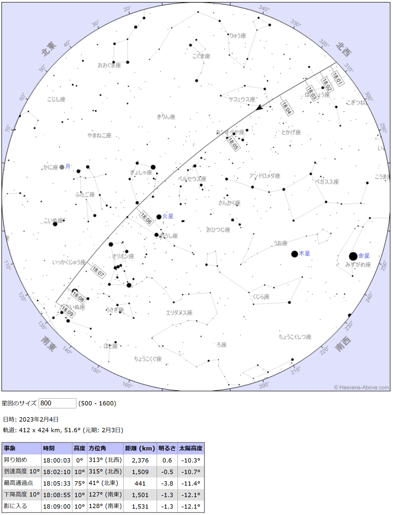 画像A-1 ISS通過 Heavens-Aboveによる