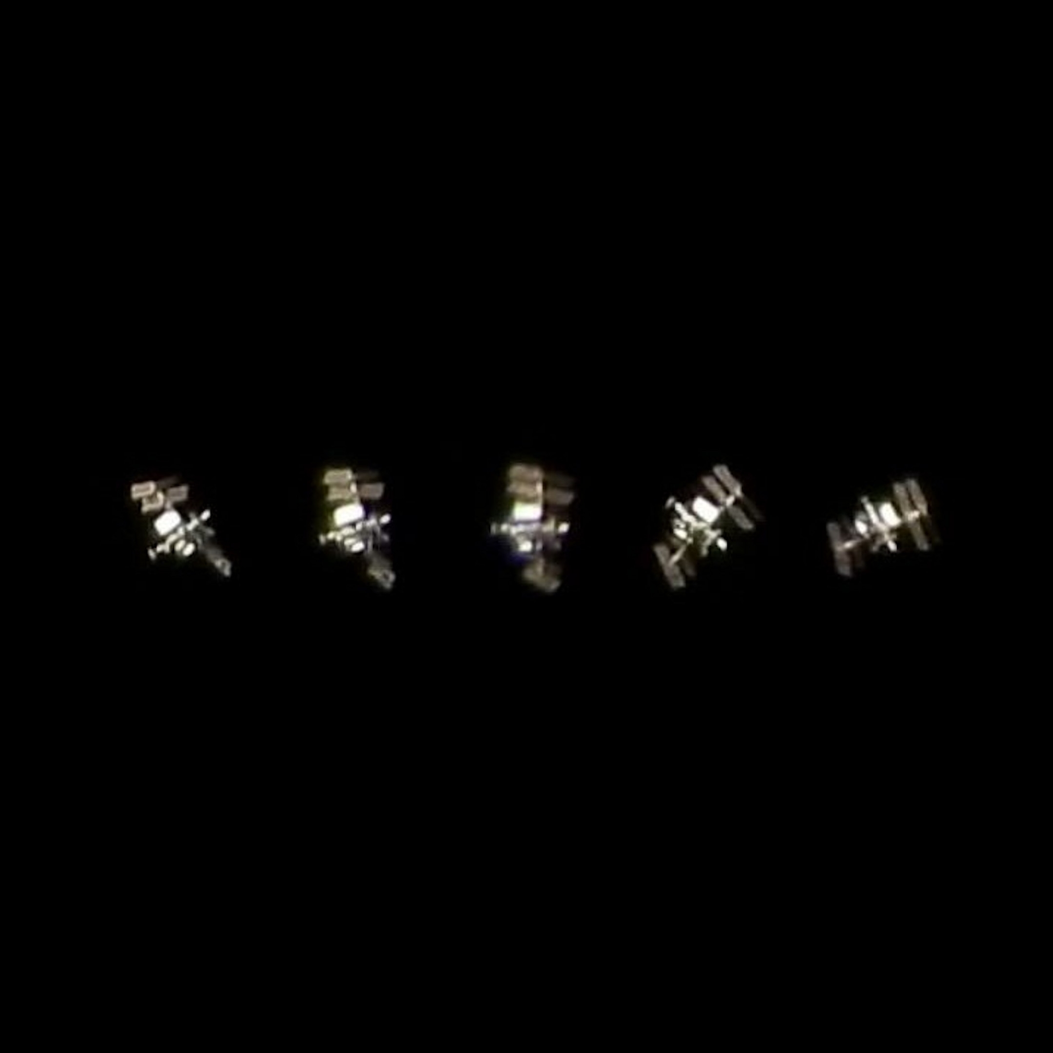 ISO感度を落とした分、画像が鮮明に映りました。久しぶりに満足できる映像です。先頭には若田宇宙飛行士が搭乗したクルードラゴン-5が白い点のように見えています。この動画ではソーラーパネルが識別できますが、向き、傾きがいつもより違うように見え、遠くから近づく段階では鳥が地上を見渡すような姿勢に見えました。