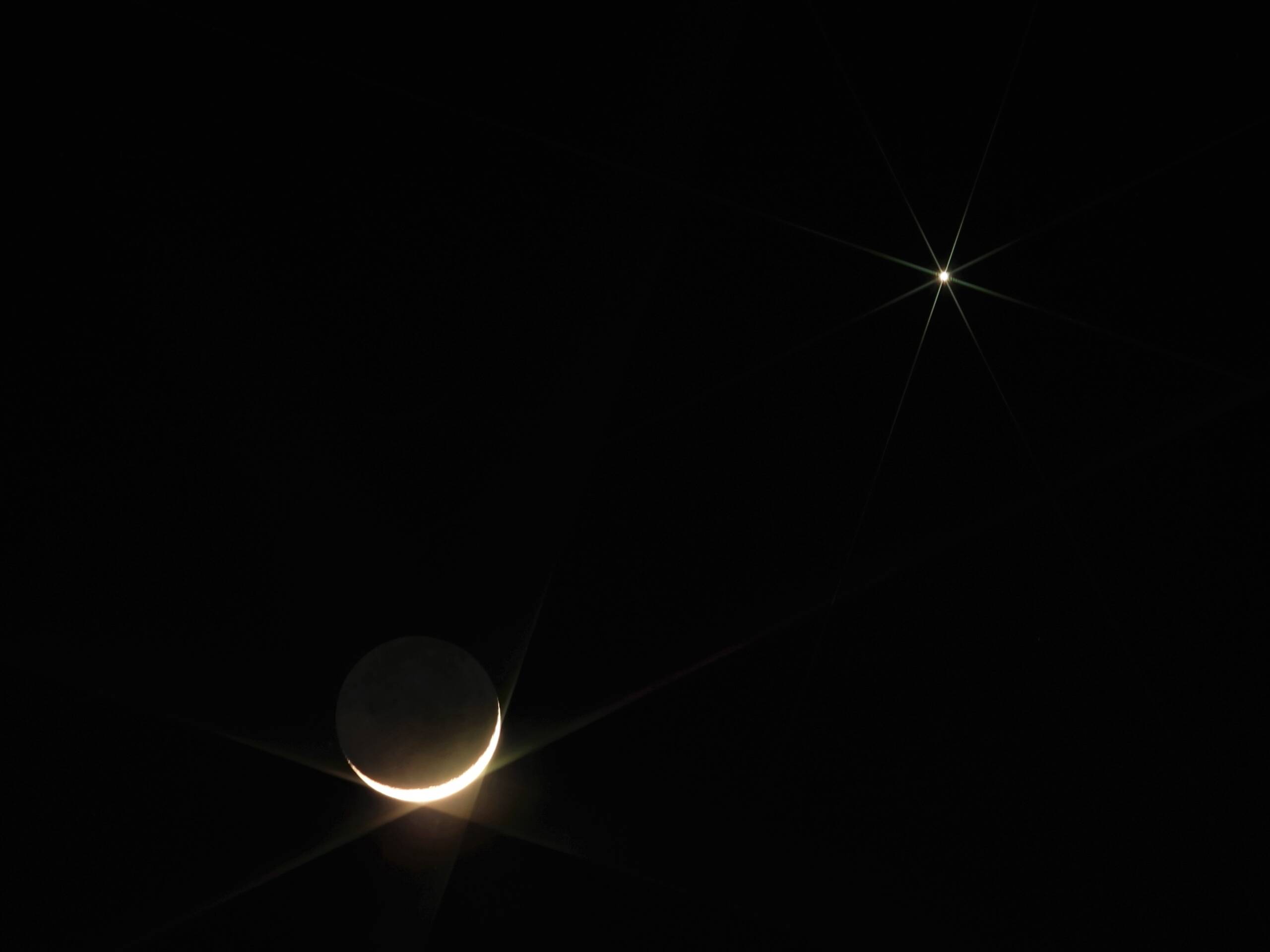 ここまで入り込むと金星の光り具合を何とかもっときれいにと。クロスフィルターを用いてレンズ前面に。しかし、ステップアップリングを忘れてしまい、そのままレンズ前の枠に載せて撮影。かろうじて光条を出して画像3に示します。