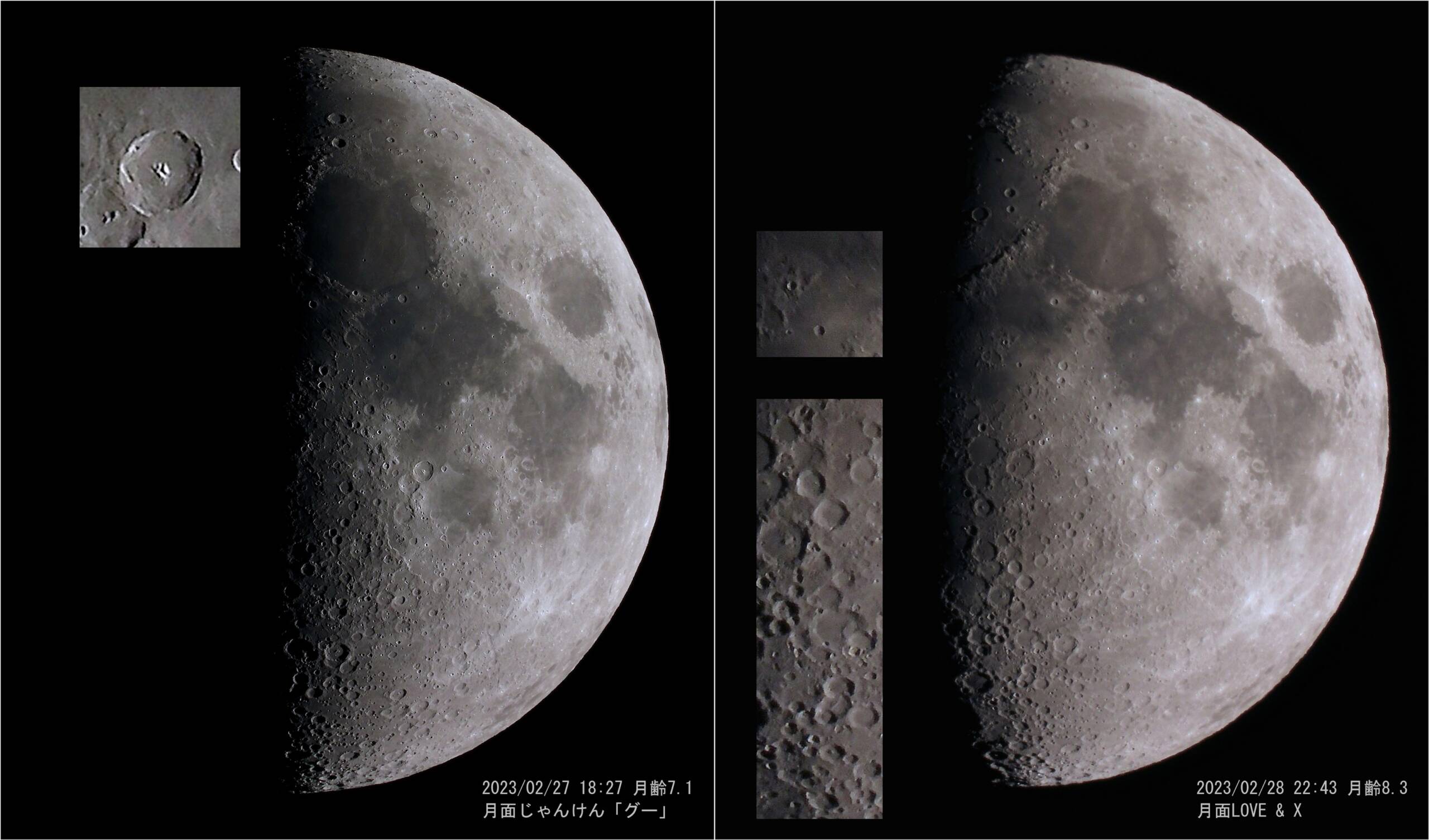 画像1 月齢7.1と月齢8.3 それぞれ2023/02/27および02/28に撮影