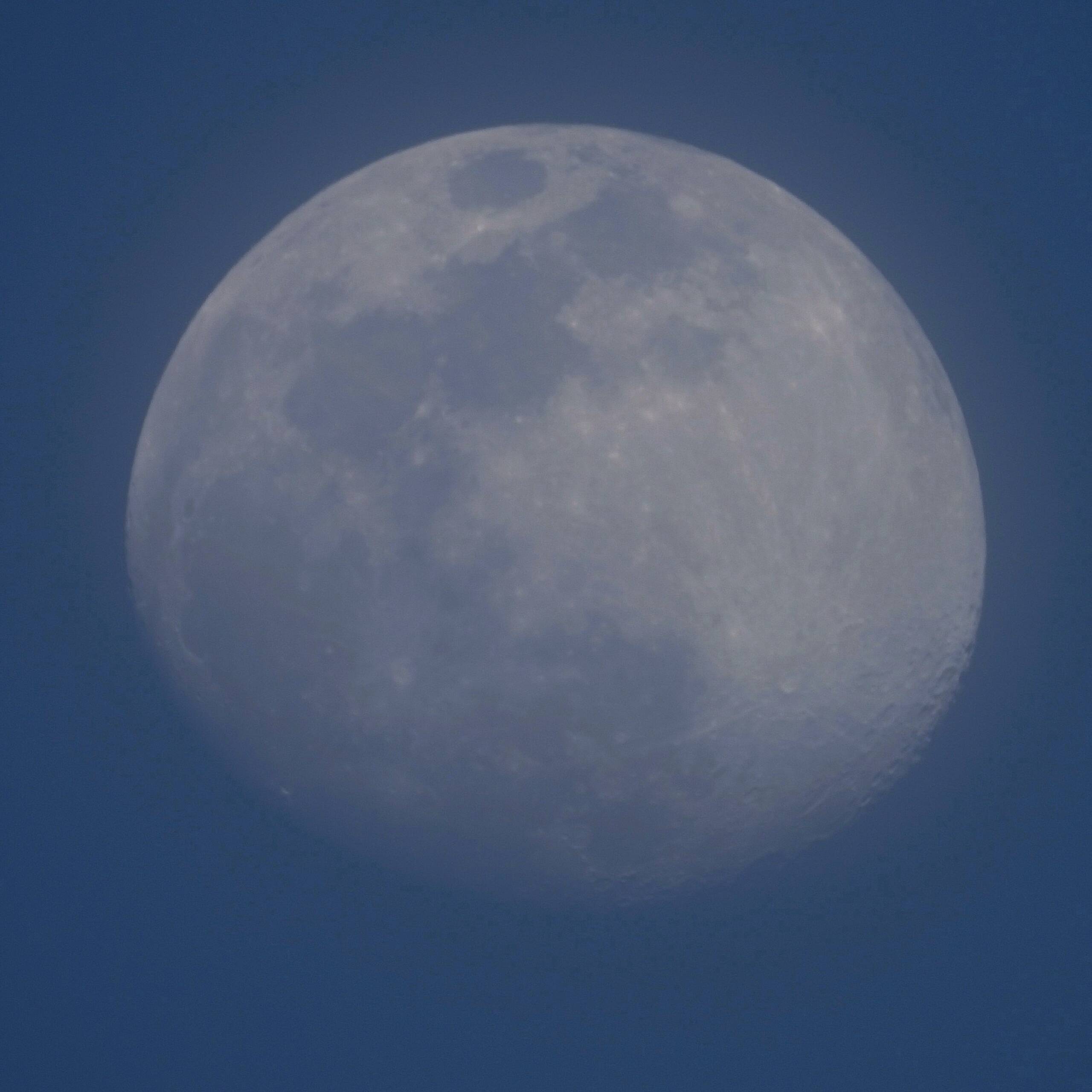 参考に全くクッキリしていない画像なのですが望遠鏡撮影の前にP1000で撮った画像を画像2に示します。目では月らしく見えてはいたのですけれど。画像1もクッキリとはしていませんがこの差はP1000と望遠鏡の撮影の間に薄い雲が消えたのか、暗くなってきたためなのかはわかりません。