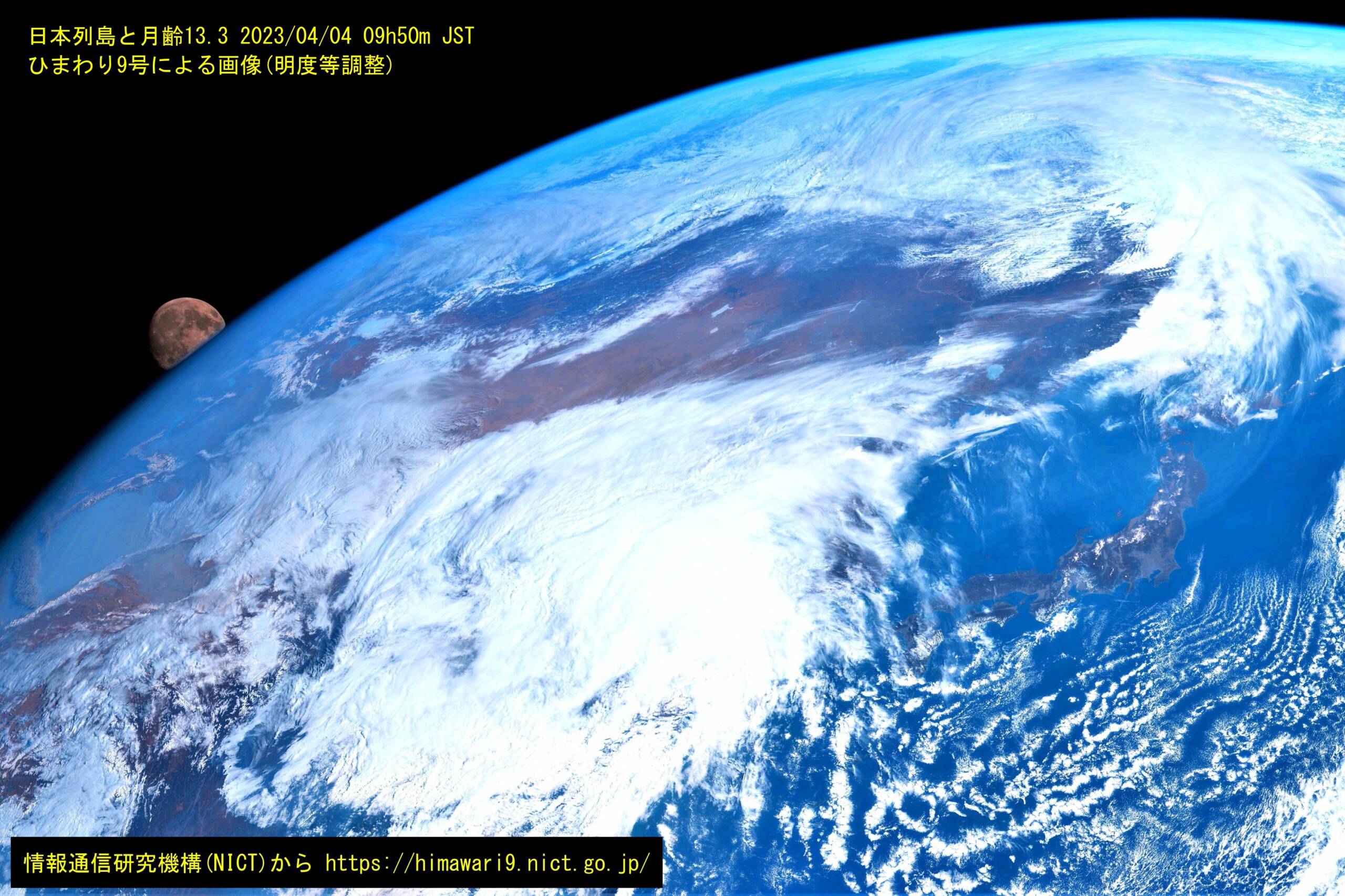 地球の雲の画像を見ていたら、日本列島の上空には雲が無くぽっかりと、良く陸地が見えていることに気が付きました。しかも、この時に月が見えるなんて面白いと。今までにもこのように両方がキレイに写った例があったのかも知れませんが確認もしていませんし、記憶に無いのでここで記録することとしました。
