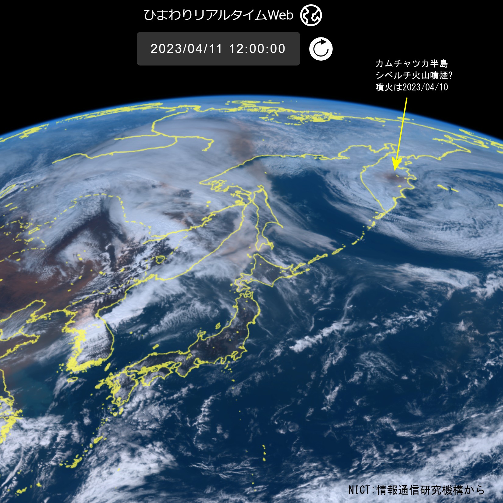 今朝のニュースでカムチャツカ半島にある火山が噴火したとのこと。大きな噴火の場合、ひまわり9号の画像には噴煙等が写る可能性がありますのでNICT:情報通信研究機構のひまわり衛星画像のサイトで確認してみました。