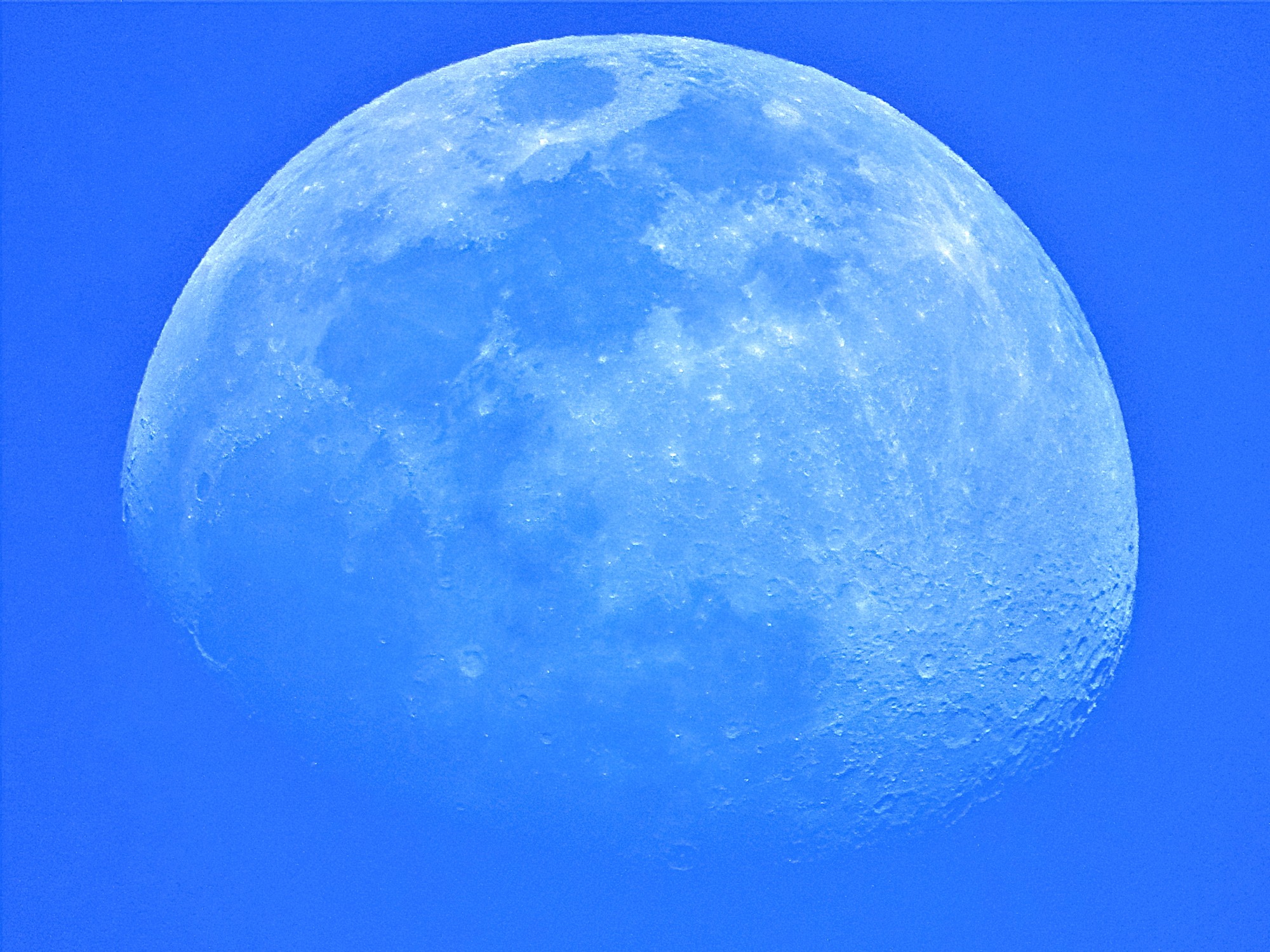 昨日は午前中は曇り空でしたが。午後から晴れました。窓から空を見ると青い空の中に白い月。時々昼間の月は探したり、撮ったりもしますが、ファインダーやモニターで見るより先日の金星と月の接近の時の眺めと同様、直接目で見た方が格段に美しいと感じました。撮影の途中で空の明るさにより月のコントラストがあまりにもはっきりしませんので、あえてP1000の設定で画像の輪郭、コントラスト、色の濃さを最大値にシフトさせました。