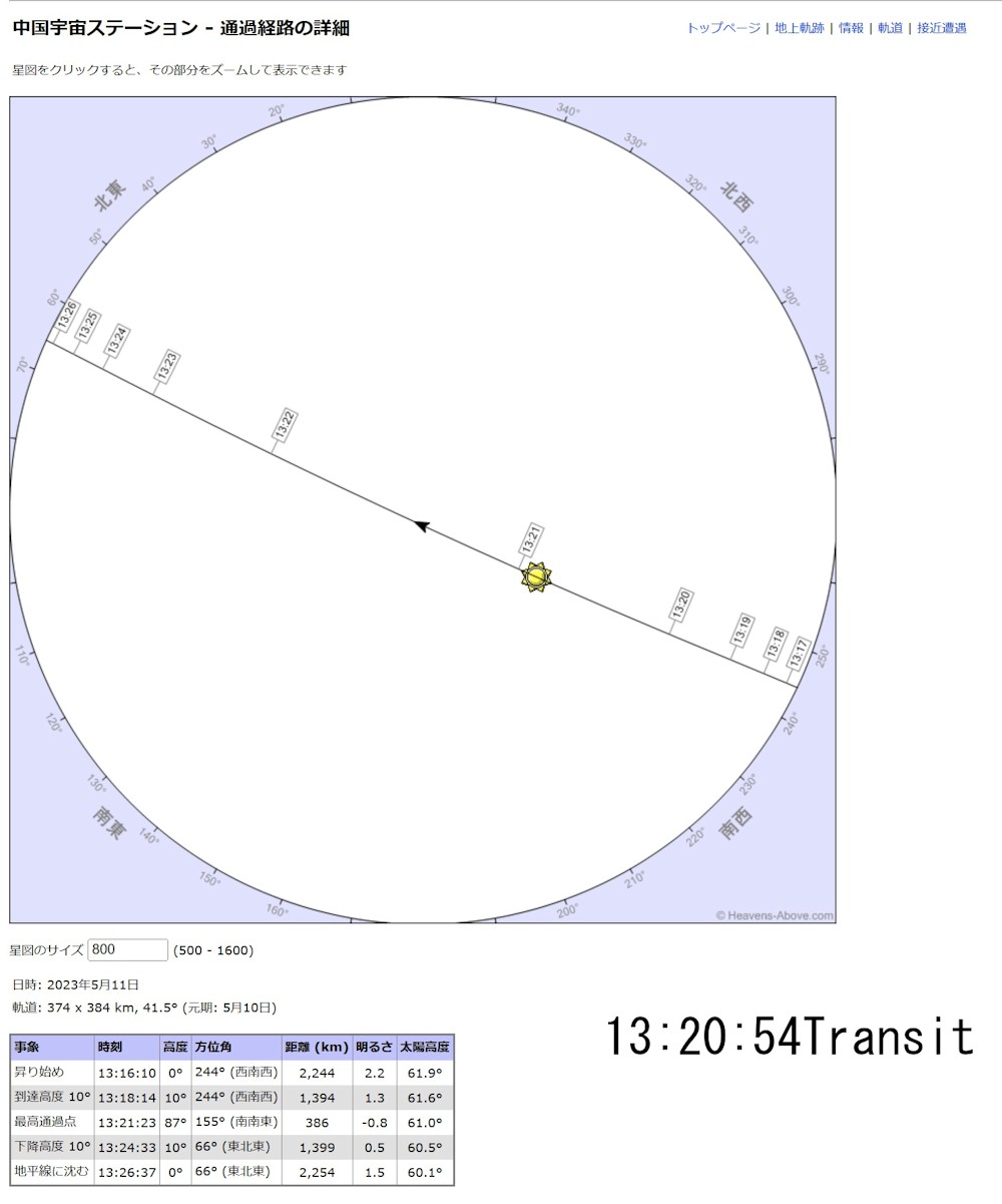 参考に当日のISS Transit FinderとHeavens-Aboveのデータを添付します。