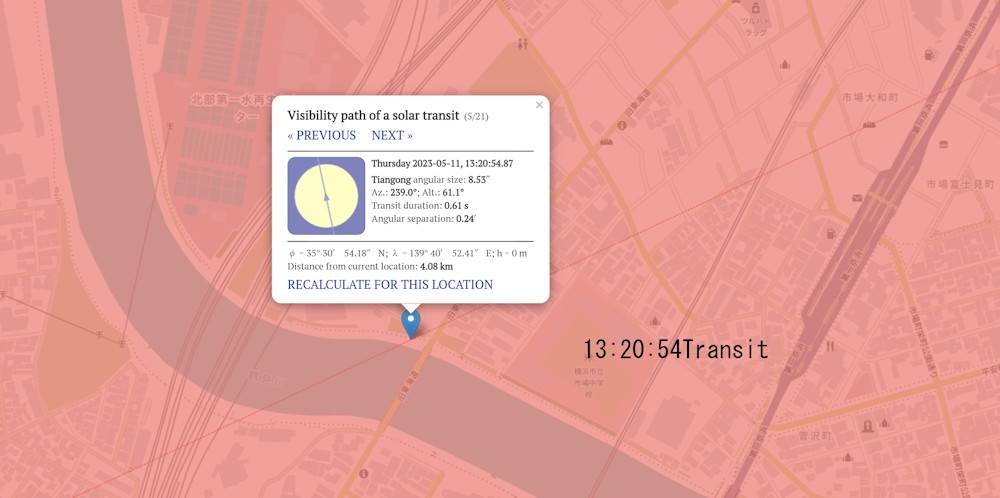 画像A-2 ISS Transit Finderによる太陽中心線通過(撮影位置)