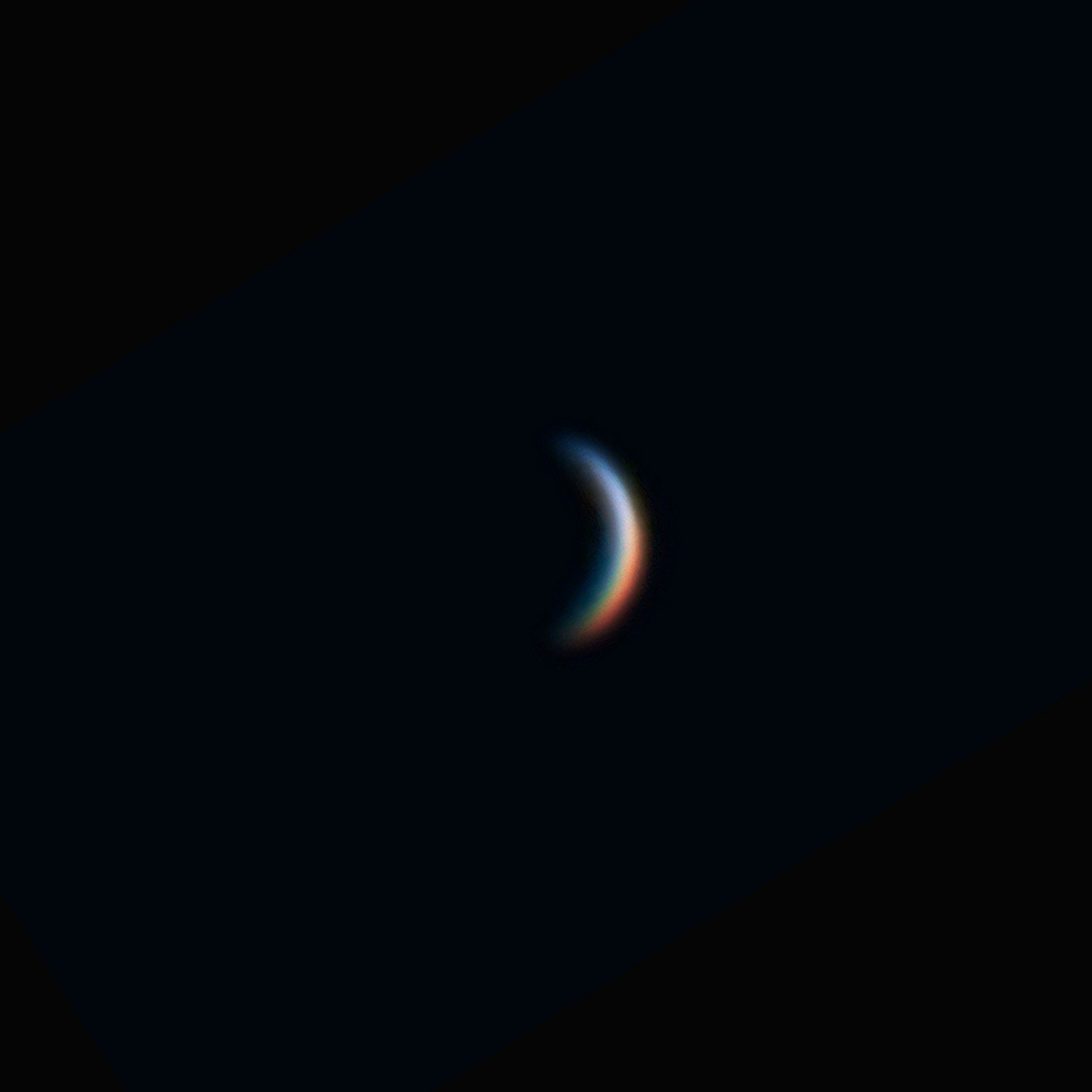 金星は撮影時は高度7°、月との関係からあれっ、見えない?、と思いましたが、そんなに低くなってしまったかとの印象。遠くのビルの屋上の明るさの中に混じって見えました。あまりに低いためか、画像では色が分散してしまいました(目では明るい点、少し黄色っぽいか?)。それでも見れて良かった。これで宵の明星は今週で終了か。