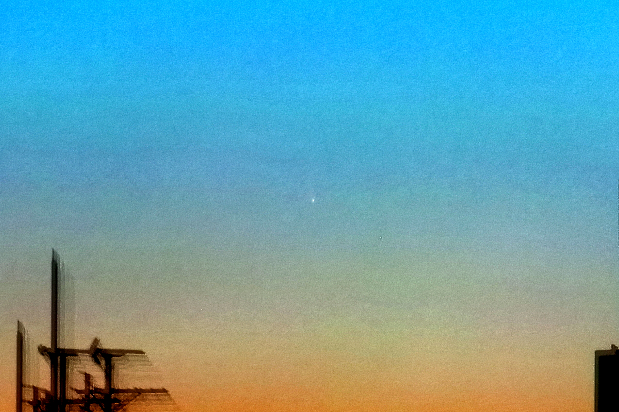 画像3 夕空の中の西村彗星C/2023 P1 2023/09/17 18:21 画像2の中央部の彗星を2倍に拡大