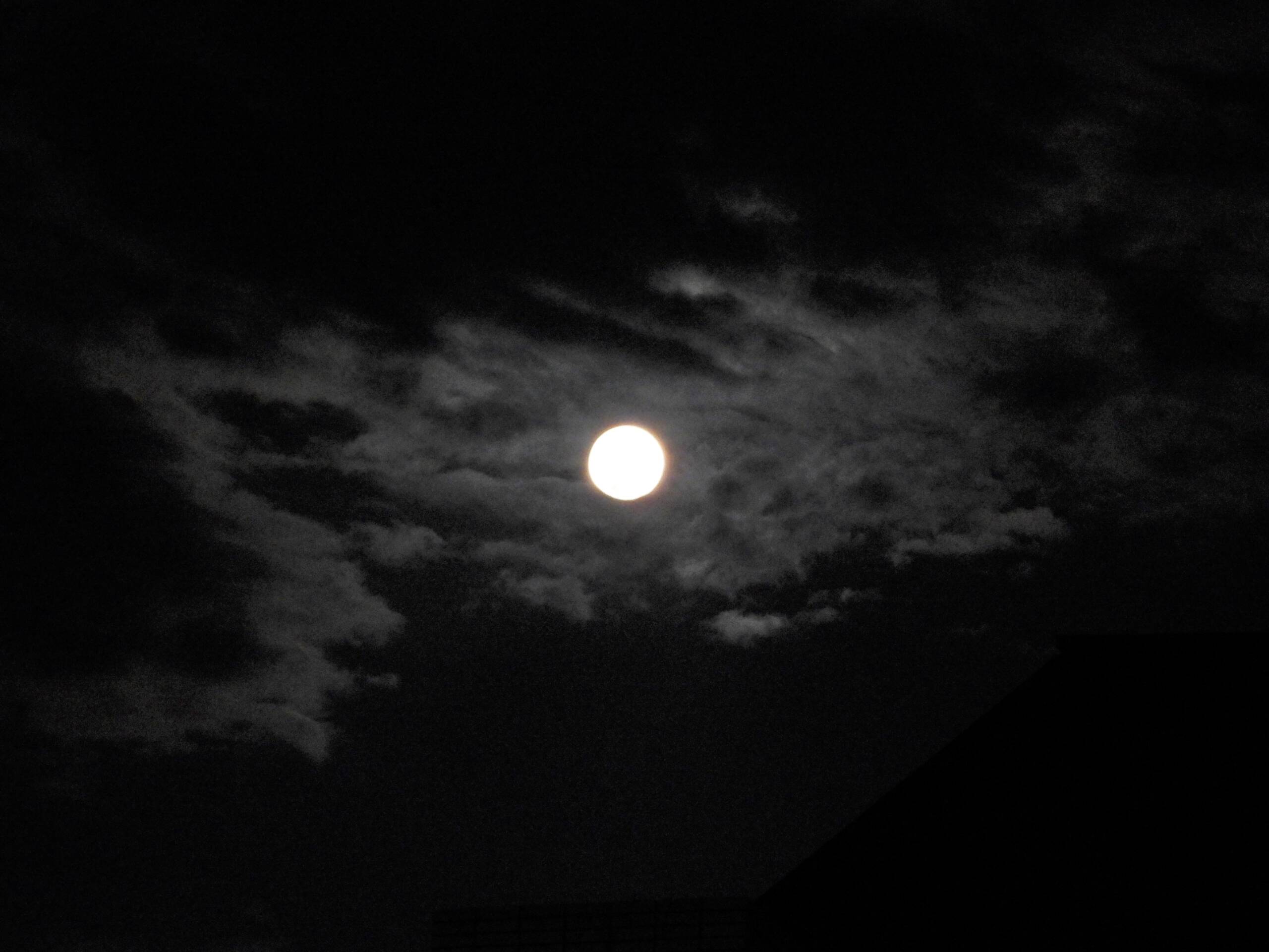 CSS通過後、19:00頃に東の空、まだ低く、雲の間に満月が見えましたので記念にと、急いで撮影。