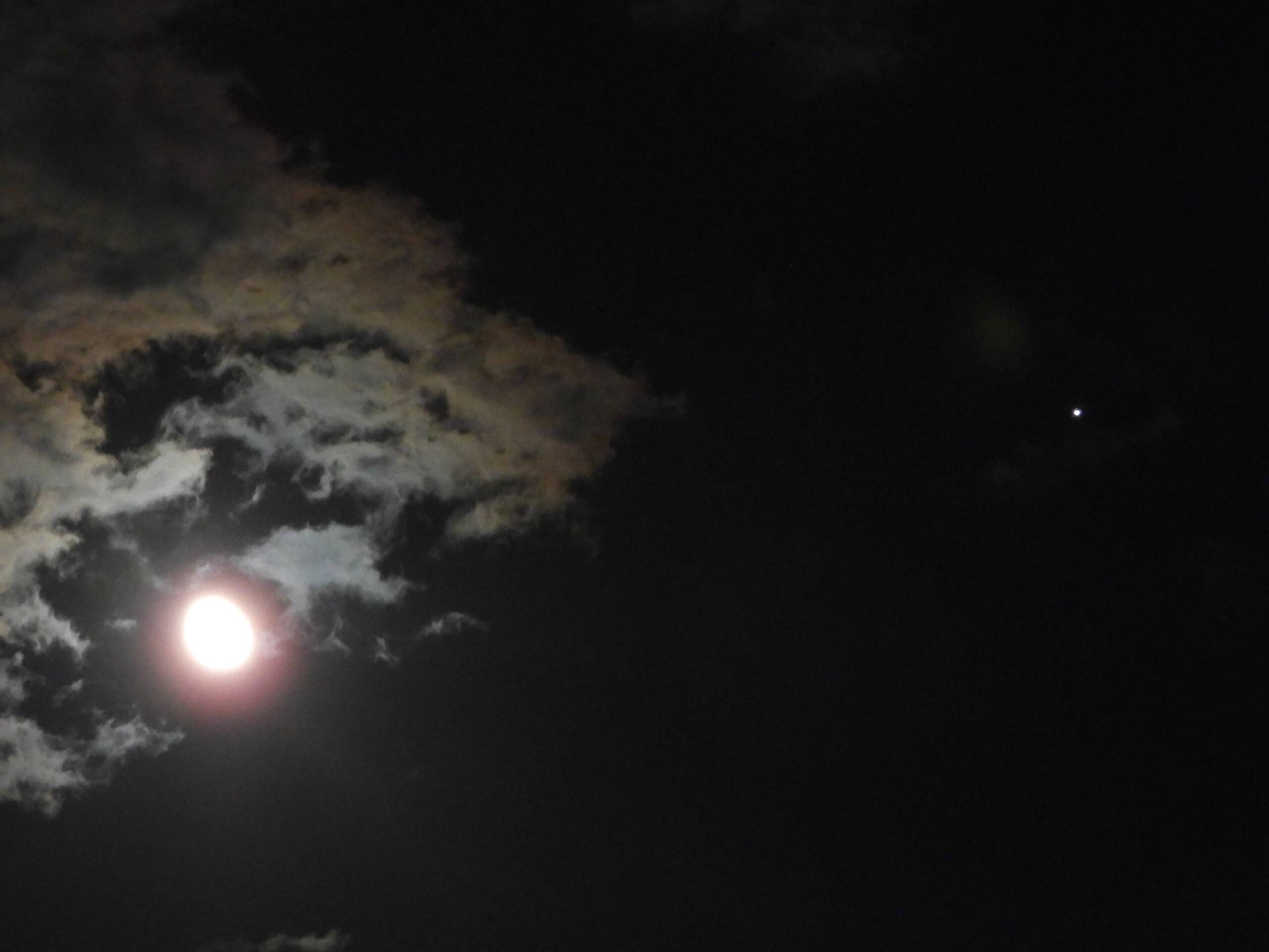 画像4 月齢17.4と木星 2023/10/02 21:40 ISO-800 f/4 135mm相当 1/2秒