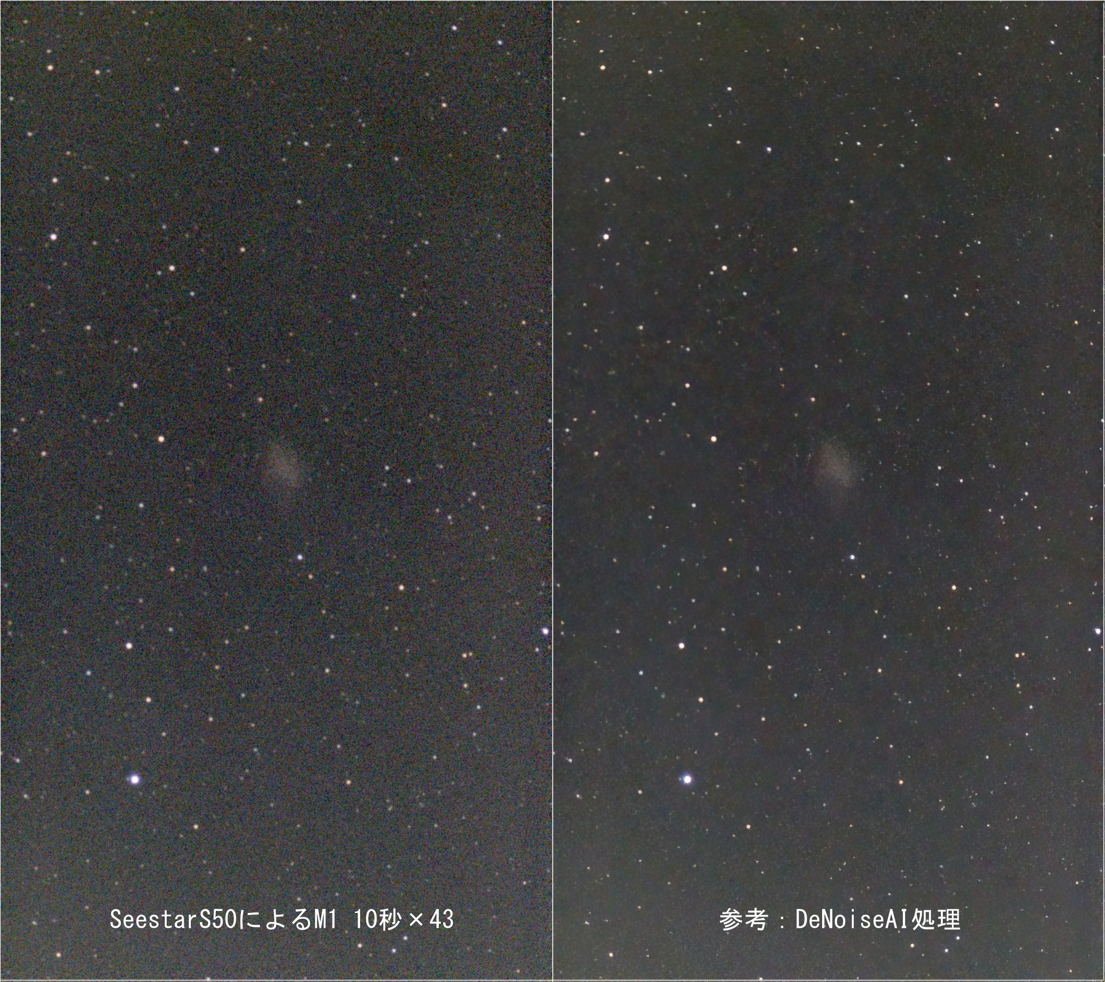 強烈な光害地域ですので持ち道具では無理と判断していましたので撮影したことはありません。子供の頃、最初に本で見たのがかに星雲、爆発したように見えて記憶に。今回それを見ようというよりは撮影対象はそれしかなかったので光として捉えられるのかどうかに興味がありました。