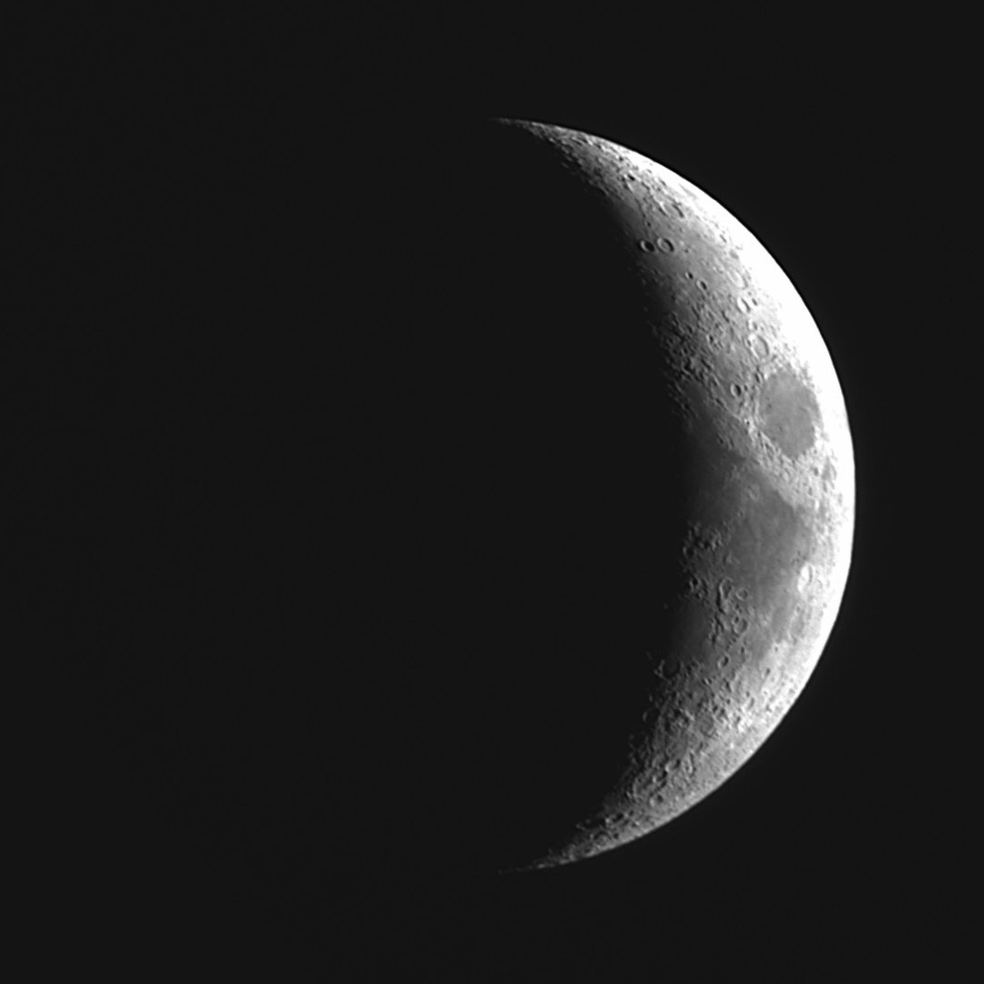 画像2 月齢4.4 Seestarによる 2023/12/17 17:10 10秒間RAW(avi)動画 ASIStudio処理 クロップ、南北を縦軸に回転補正