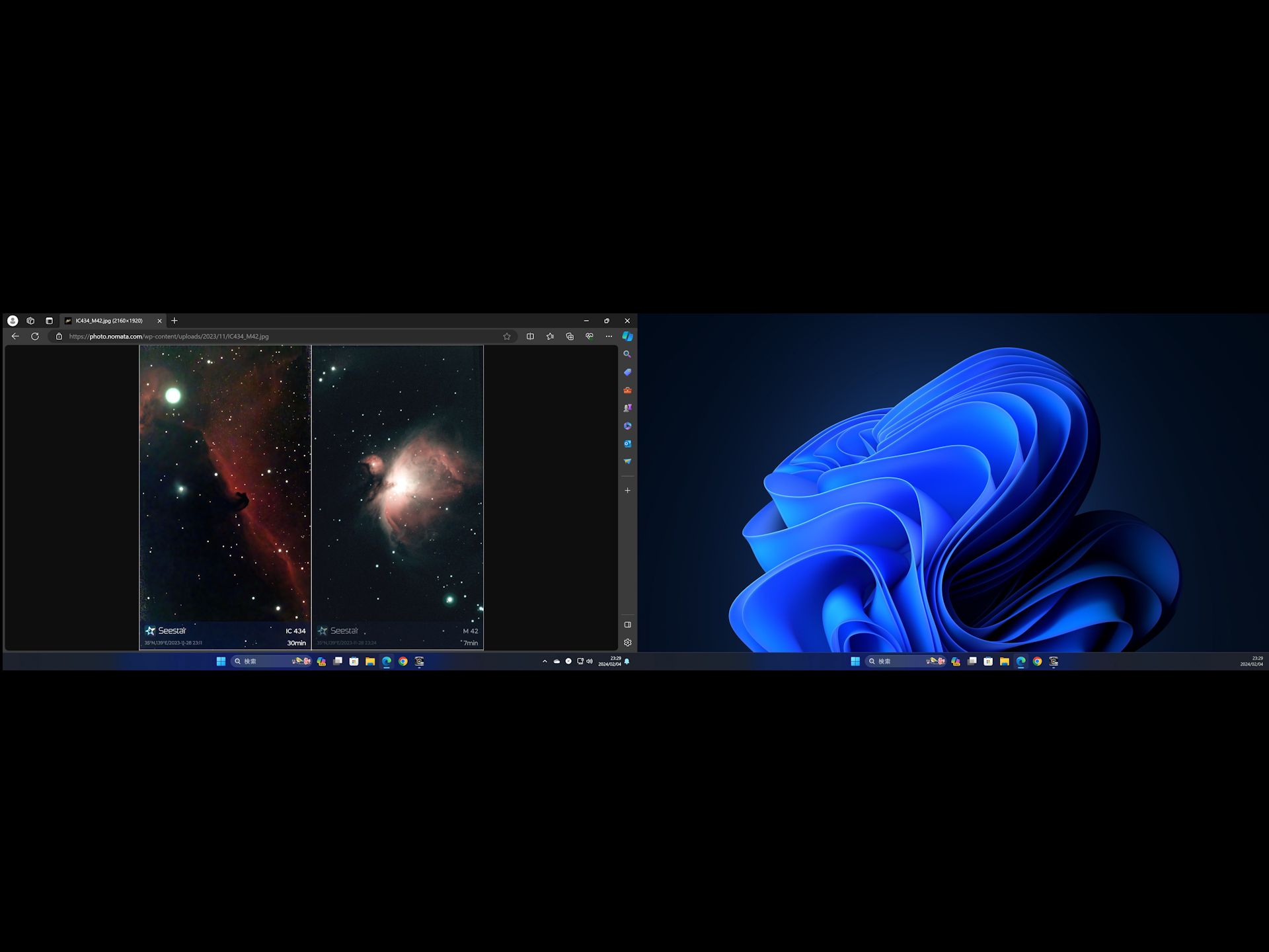 画像1 New PC Windows-11 デュアル4Kモニター画面の例 2024/02/05