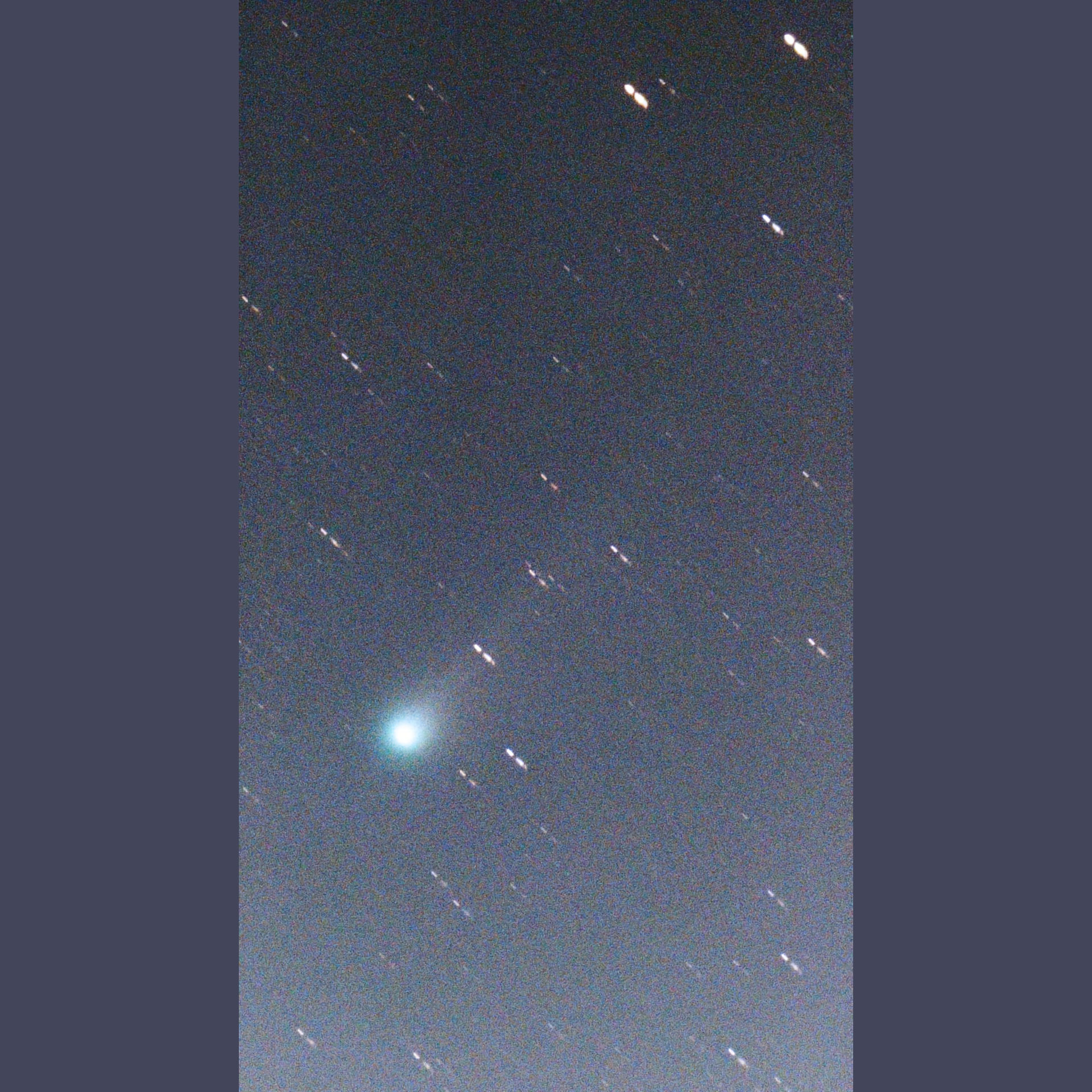 粗い画像でネットで見られるようなクリアさはないのですが、右上に尾が延びているようには見えます。ステラナビゲータでは5.9等と表示されます。