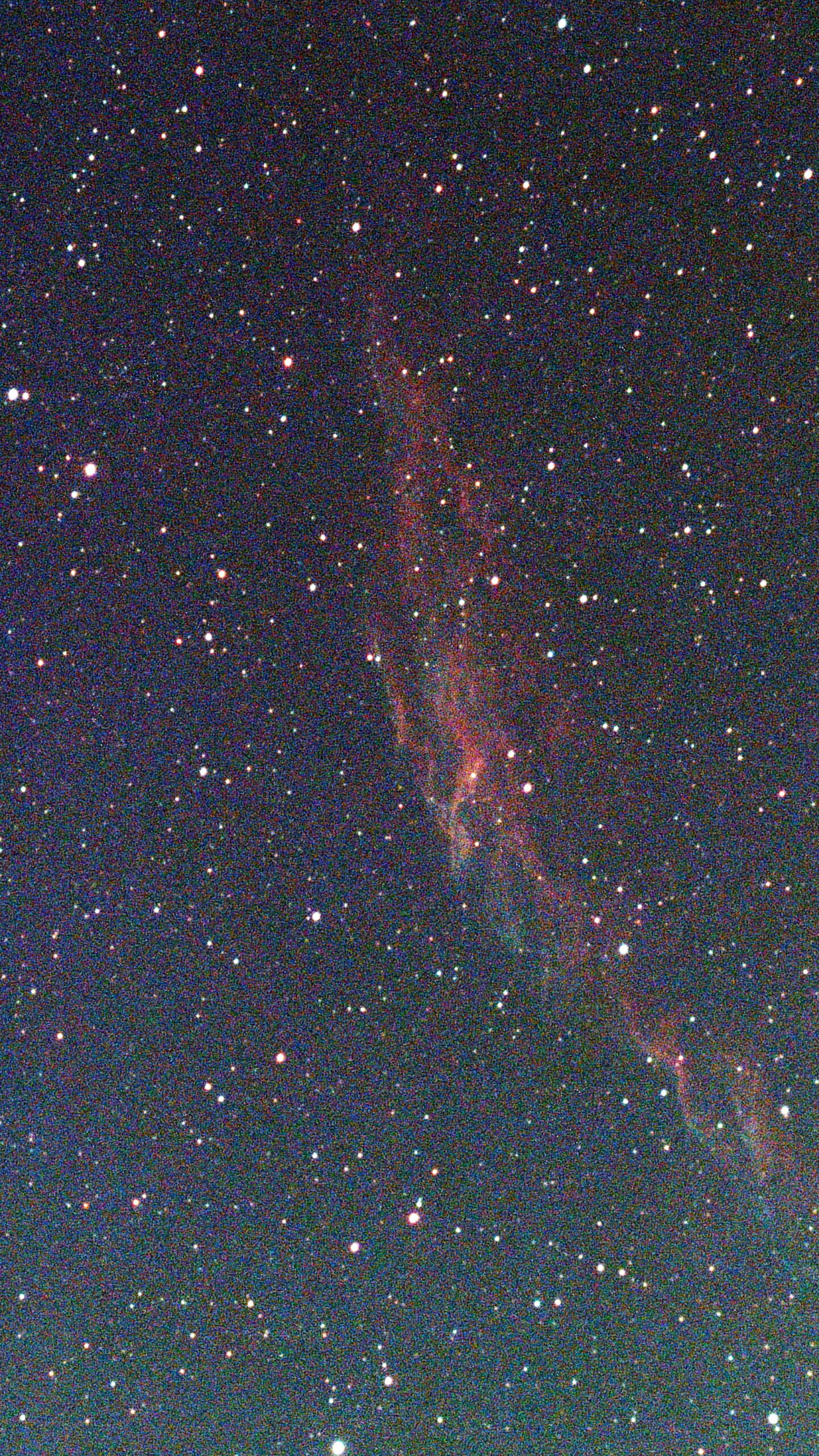これらの画像をSirilでスタック、写野回転の影響を取り除き、リサイズ、画像を明るく調整した結果を画像1に示します。これをさらに明るく表示すると鮮やかになるのですが画像の粗さが目立ちますのでこの程度の調整にしました。