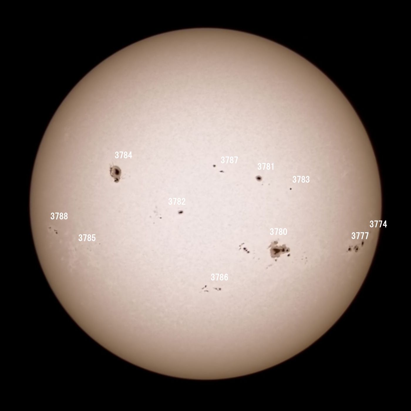 画像1。黒点画像ではわかりませんが太陽は活発な様子、大きな黒点は見ごたえがあります。
