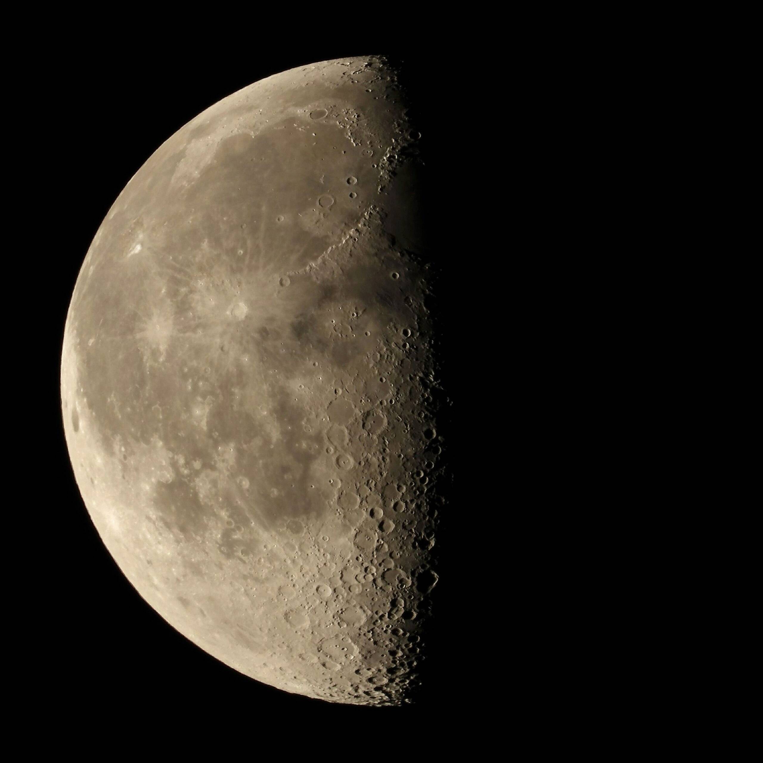 撮影時刻は下弦前日の2024/08/25 23:50。ステラナビゲータ12の表示では23:50:09で月齢21.1、23:50:10で月齢21.2、どちらでも良いですけれど下弦は2024/08/26 18:26。COOLPIX P1000による撮影です。