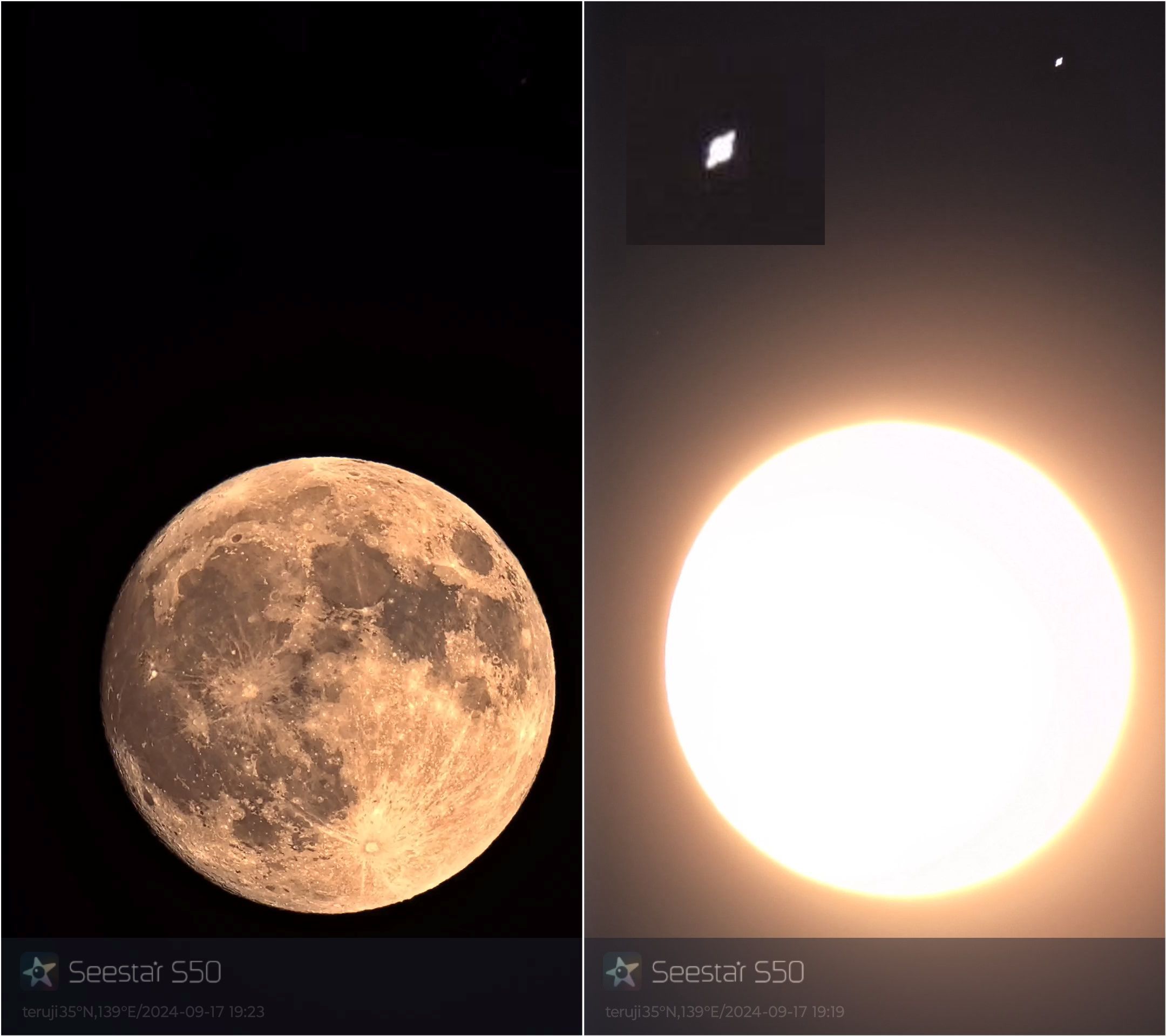 画像1 中秋の名月 2024/09/17 19:20頃 Seestarによる 土星も近くに