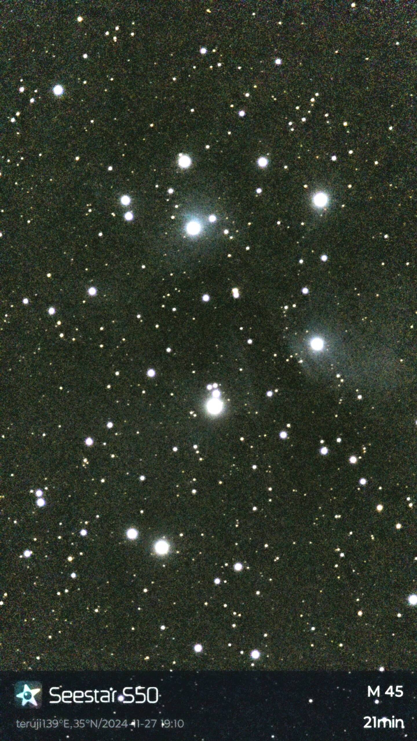 画像2 M45 すばる Seestar S50 フレーミング(Mosaic撮影)モード 2024/11/27 18:02~19:10