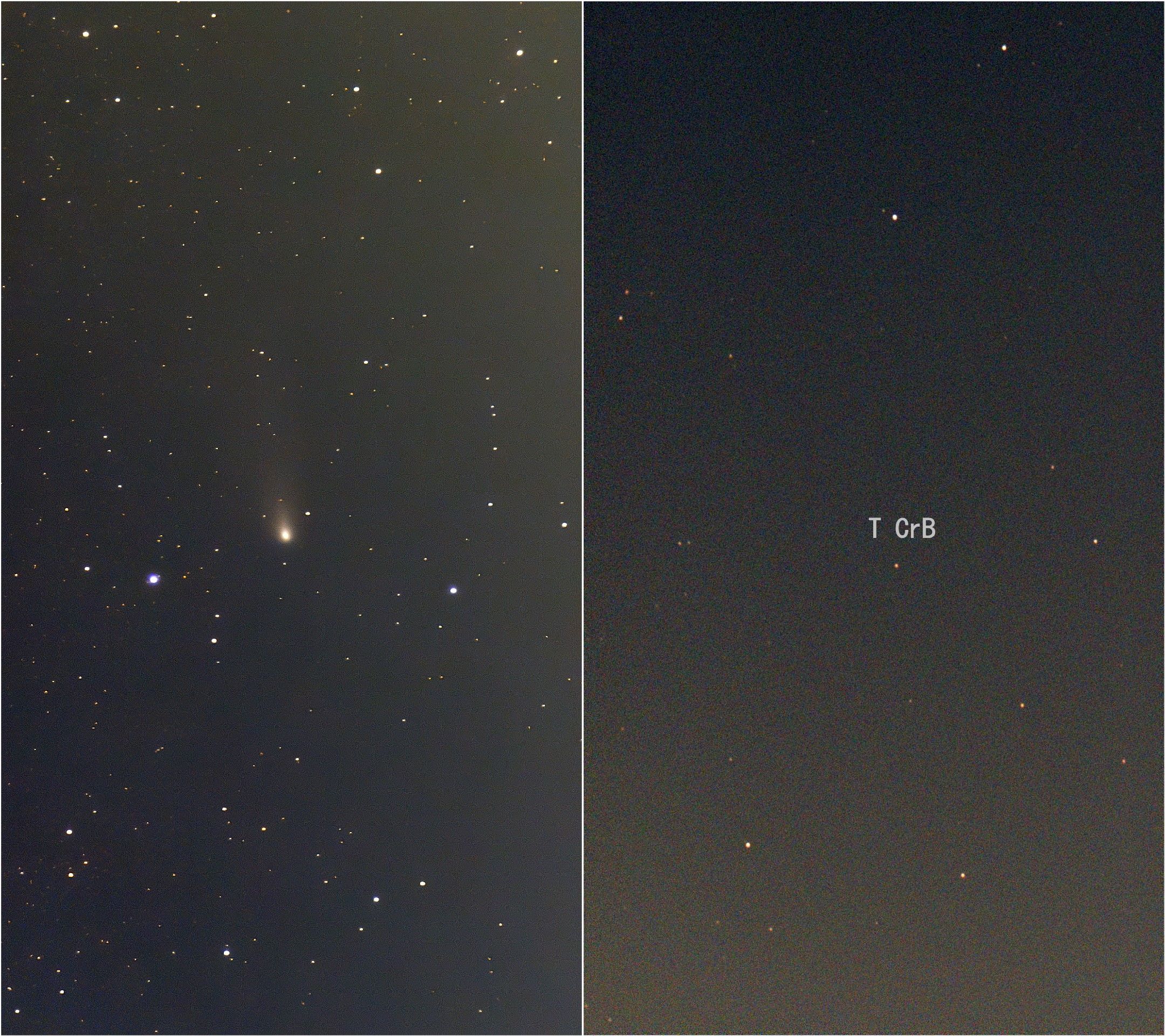 昨日撮影した彗星C/2023 A3およびかんむり座T星です。画像1に示します。