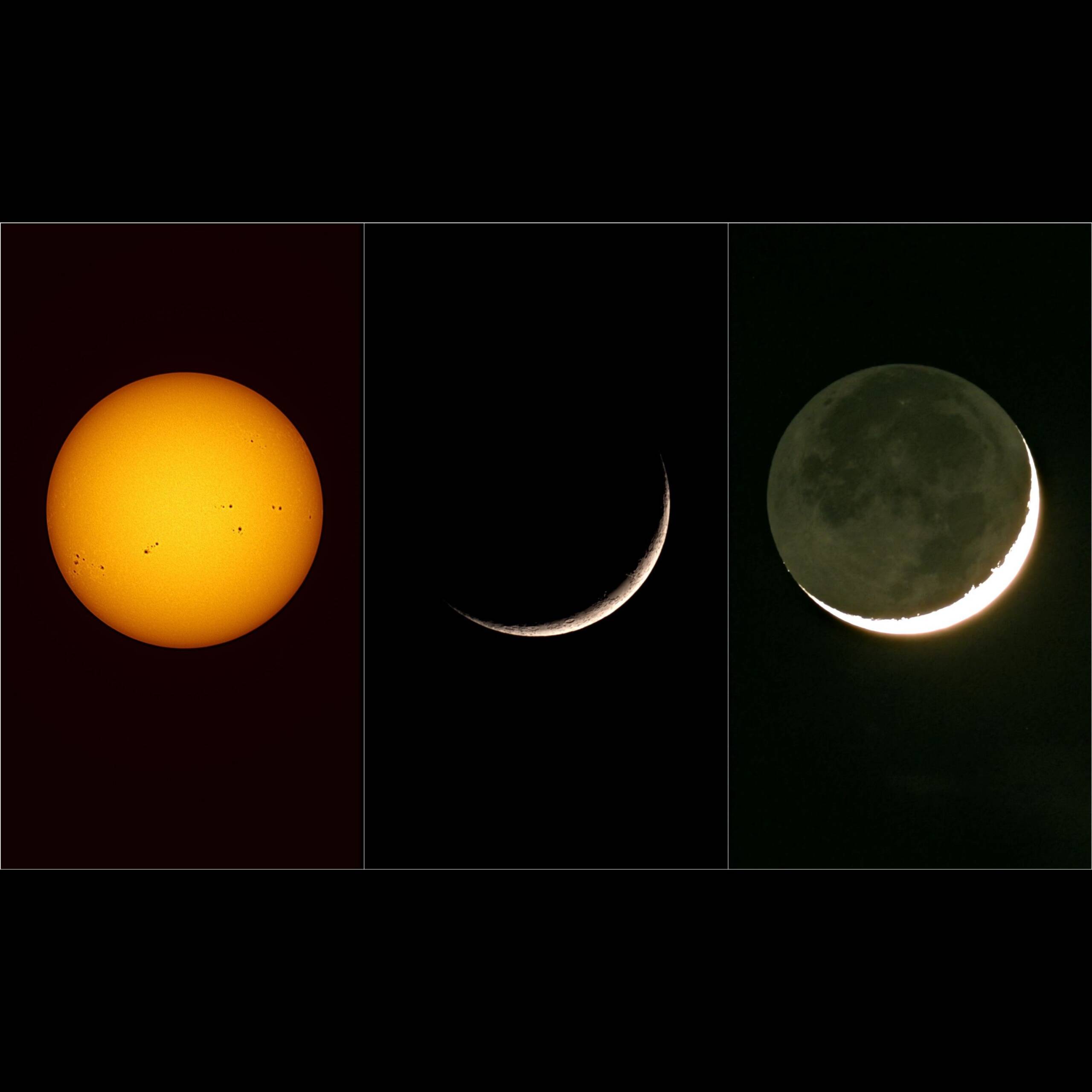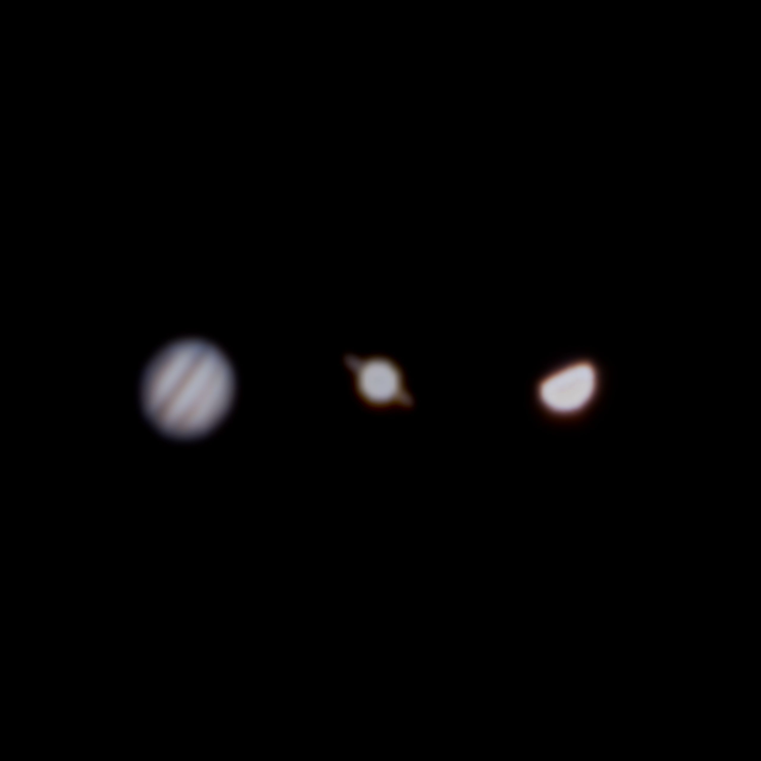 画像1に太陽、月齢2.4とその地球照を、動画1に木星、土星、金星を。(追記:各動画からスタックして得られた画像を画像2に示します。それらしく惑星と見えるのが良い)。年明け最初に天体もそれらしく撮りたい気持ちで。