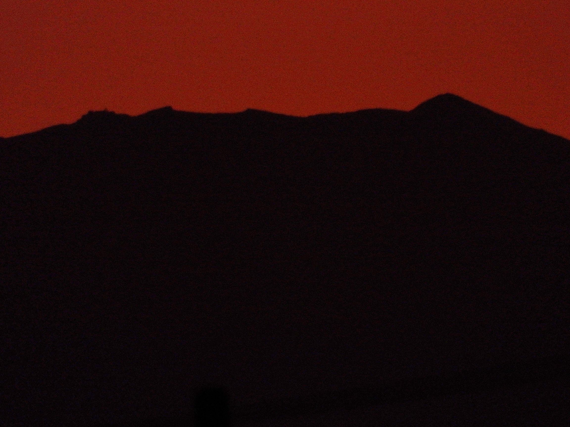 ISS通過前に照準器の調整(対象が画角内に入るように)、フォーカス調整のため富士山を。画像2が400mm焦点距離の画像、画像3が富士山山頂でISS撮影と同じ焦点距離3,000mmの画像です。ISS撮影時の画角が如何に狭いか参考のため掲載しました。シャッター速度は異なります。ISSは時々雲間を通過しそれでも消えないもののクリアな画像にならなかったのが残念。