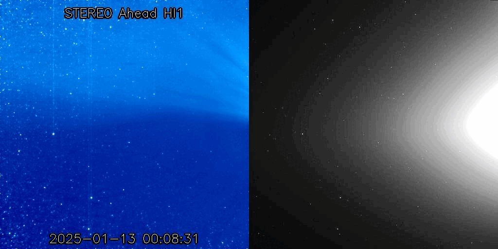 ここでは最後に記録としてこの彗星をSOHO LASCO C3画像の写野から外れた以後、詳しい画像を見せてくれたSTEREO HI-1の明るい画像とFITS画像を並べて画像1に示します。STEREOは彗星崩壊と思われる直前、直後(上記崩壊の2025/01/19前後の姿が含まれています)を画角内に捉え、核の部分ではそのような事象の変化を感じさせず迫力のある彗星の姿を残してくれました。