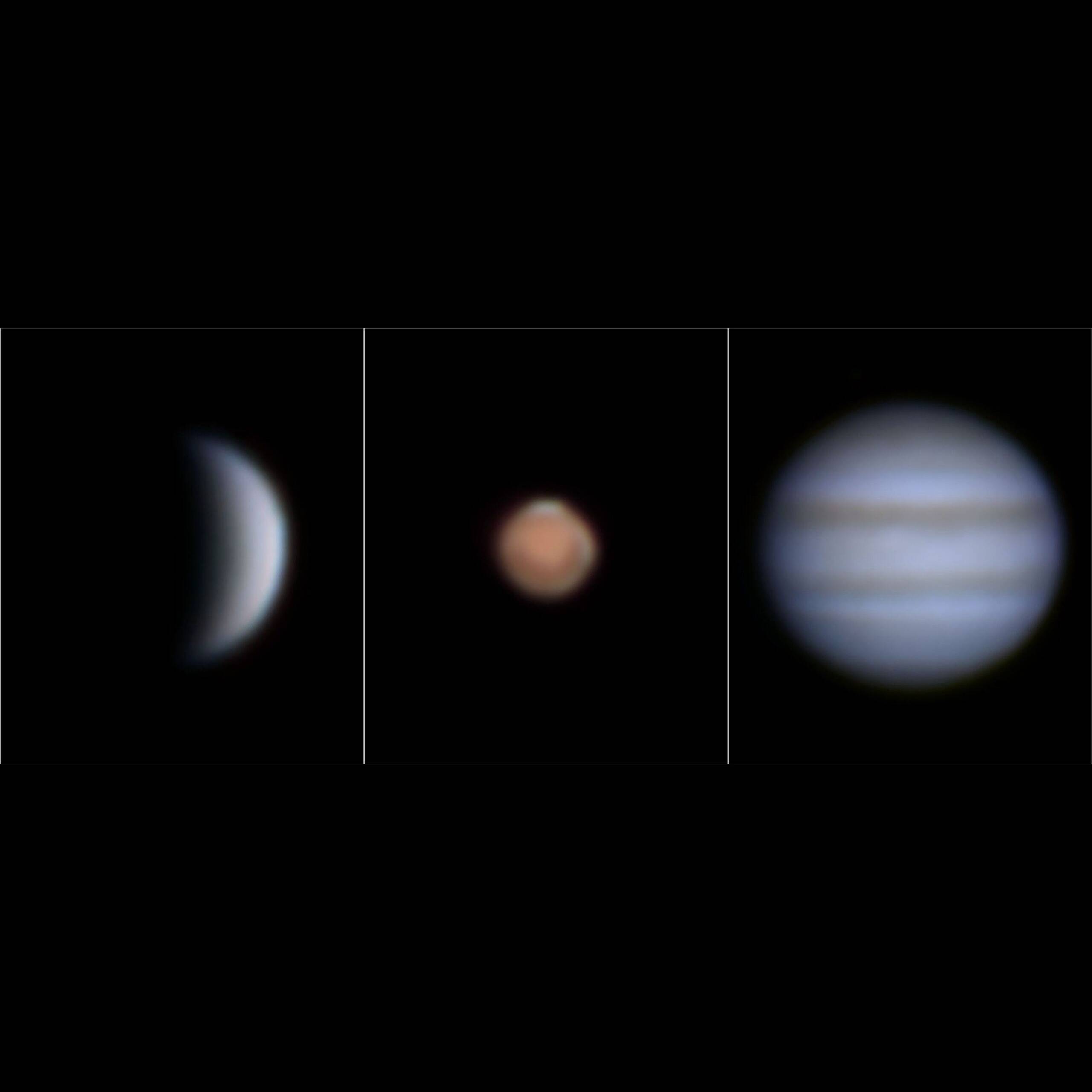 画像1に三惑星を示します。各惑星ともに縦軸を南北に回転補正しています。4K動画からのスタックですがモニター画面で見た像の方が見ごたえがあった感想です。