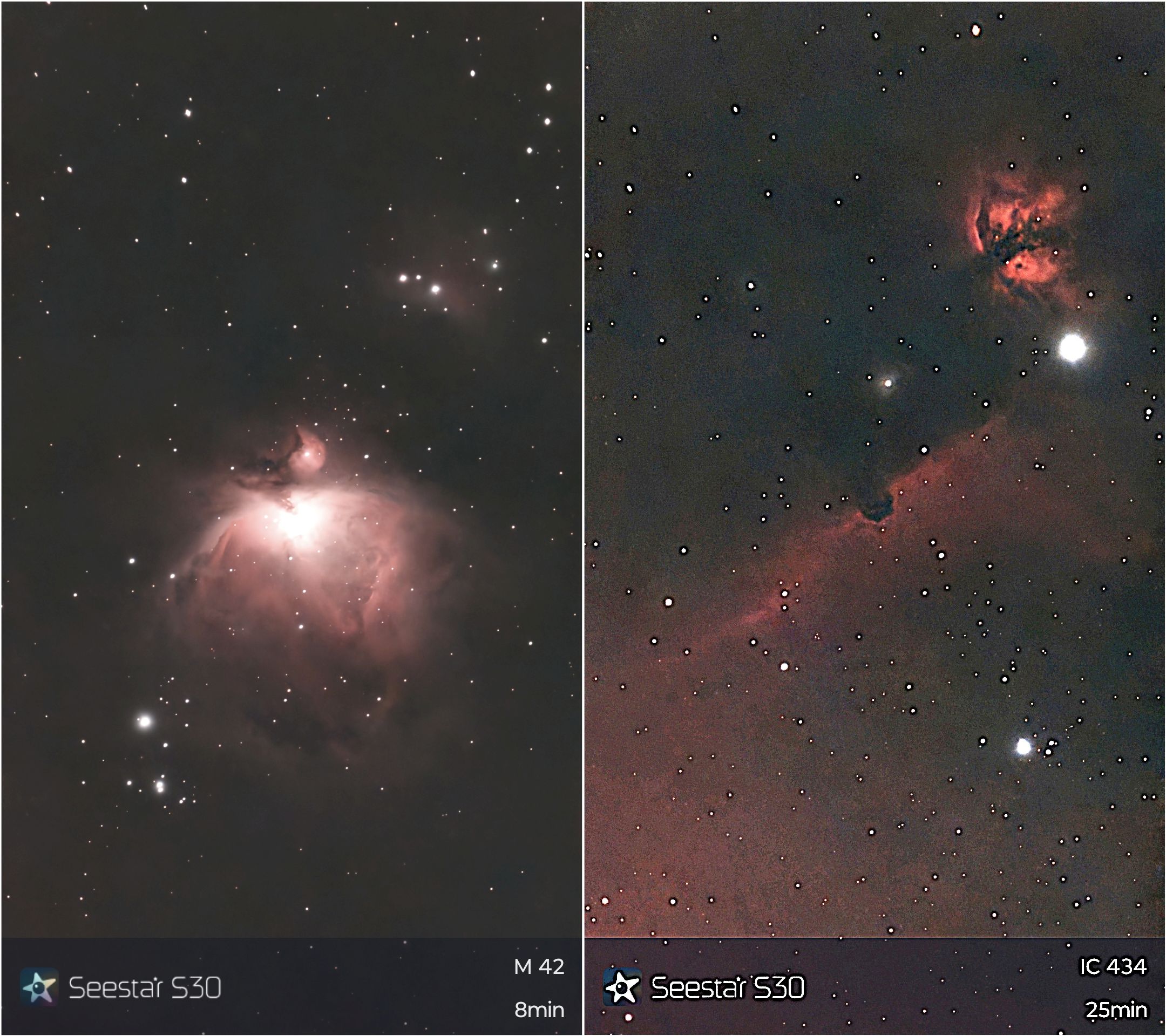 画像1 M42オリオン大星雲およびIC434馬頭星雲 Seestar S30 2025/03/14撮影